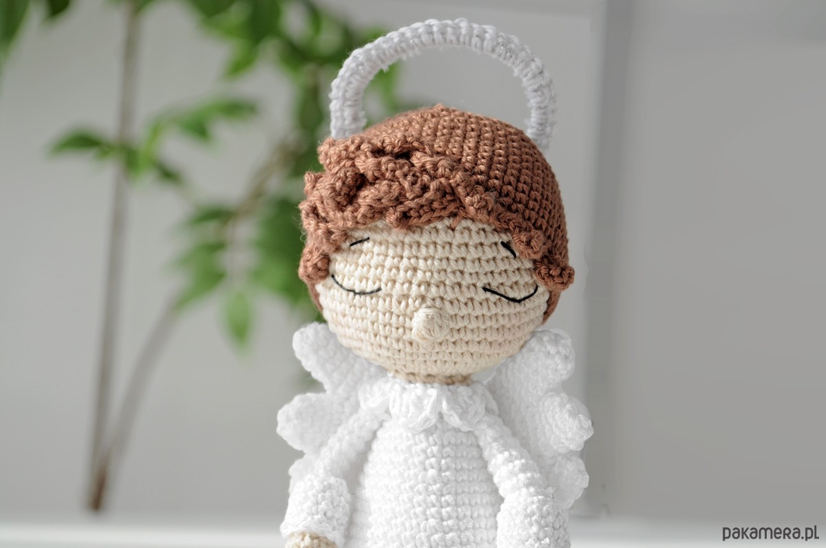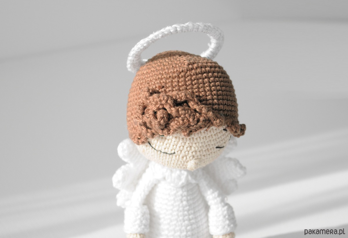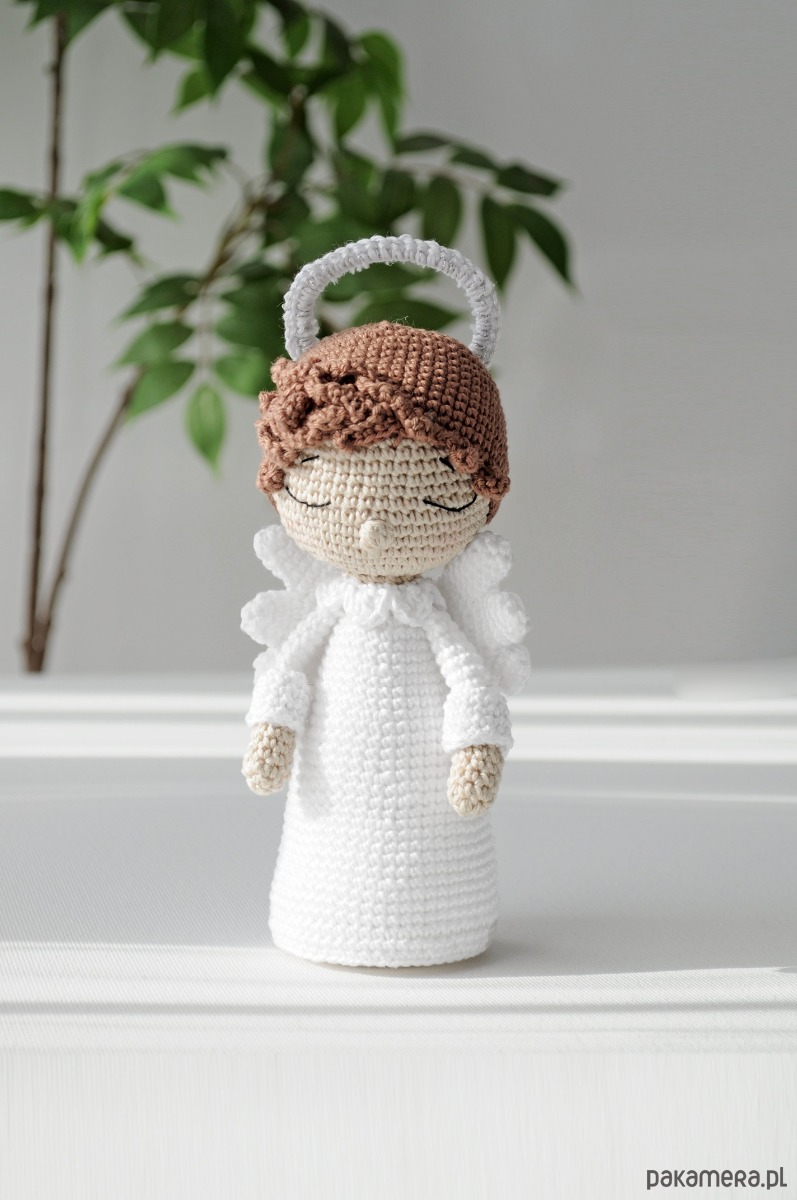 Aniołek ma ok. 17cm wzrostu (bez aureoli). Może przycupnąć na półeczce koło łóżka, pilnując dobrych snów, lub zawisnąć w dowolnym kąciku w pokoju dziecka. Będzie też idealnym prezentem na chrzest, święta, komunię czy urodziny.