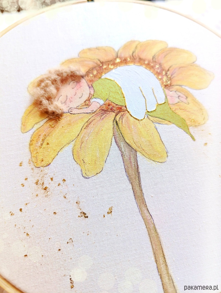 Efekt 3D tworzą włoski aniołka i złocenia.