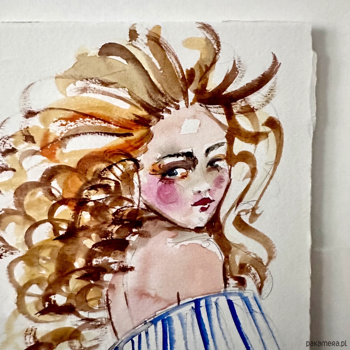 Pracę wykonałam farbami White Nights na papierze akwarelowym wysokiej jakości Arches Aquarelle o gramaturze 300 g.