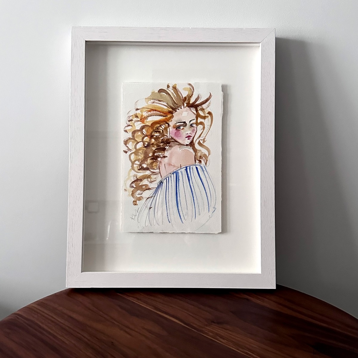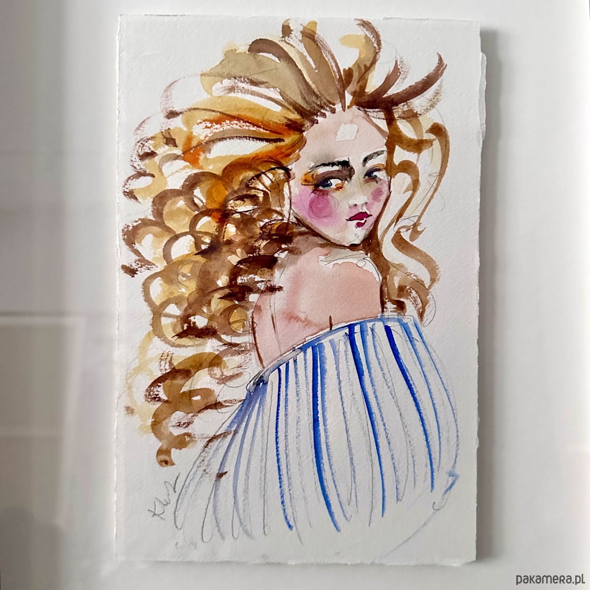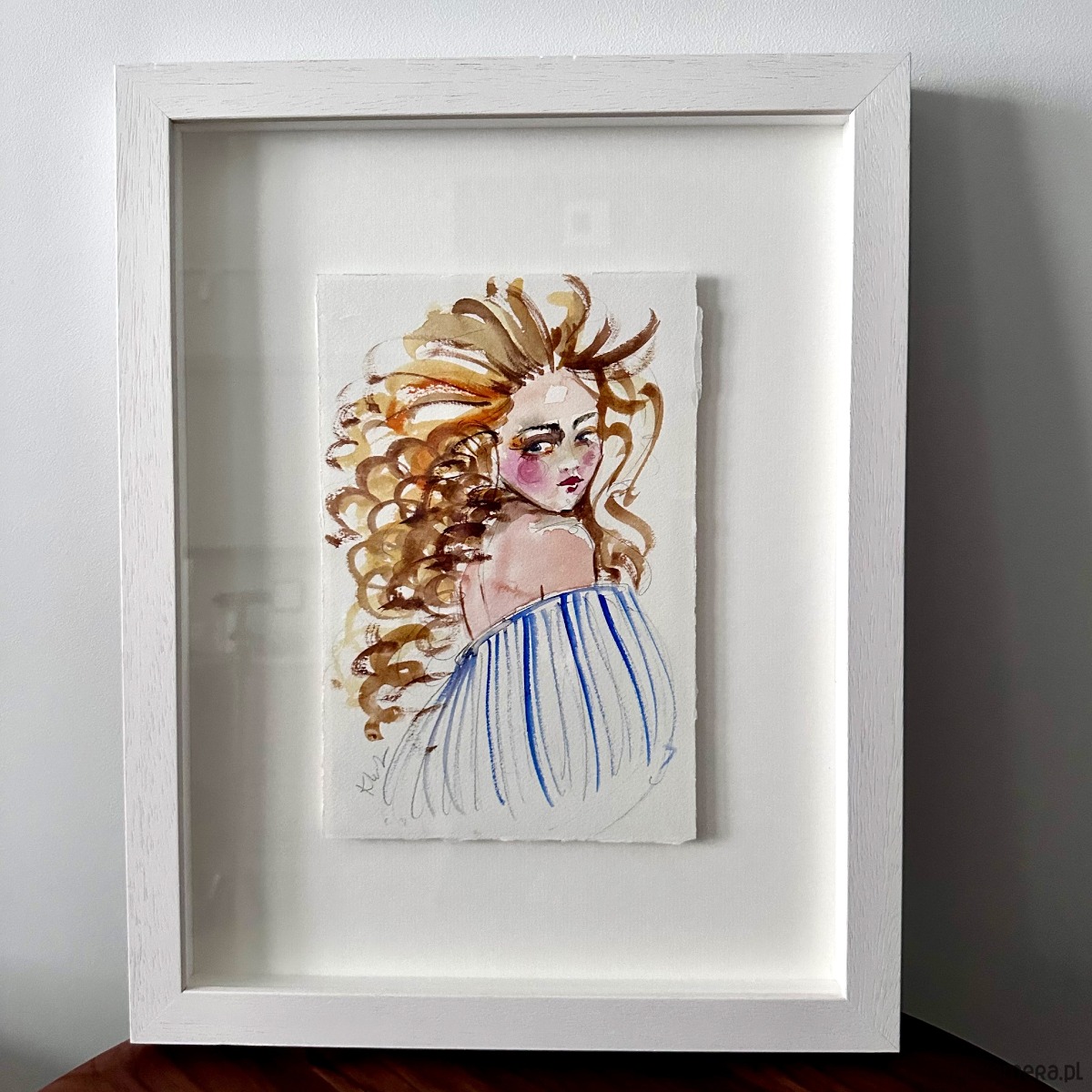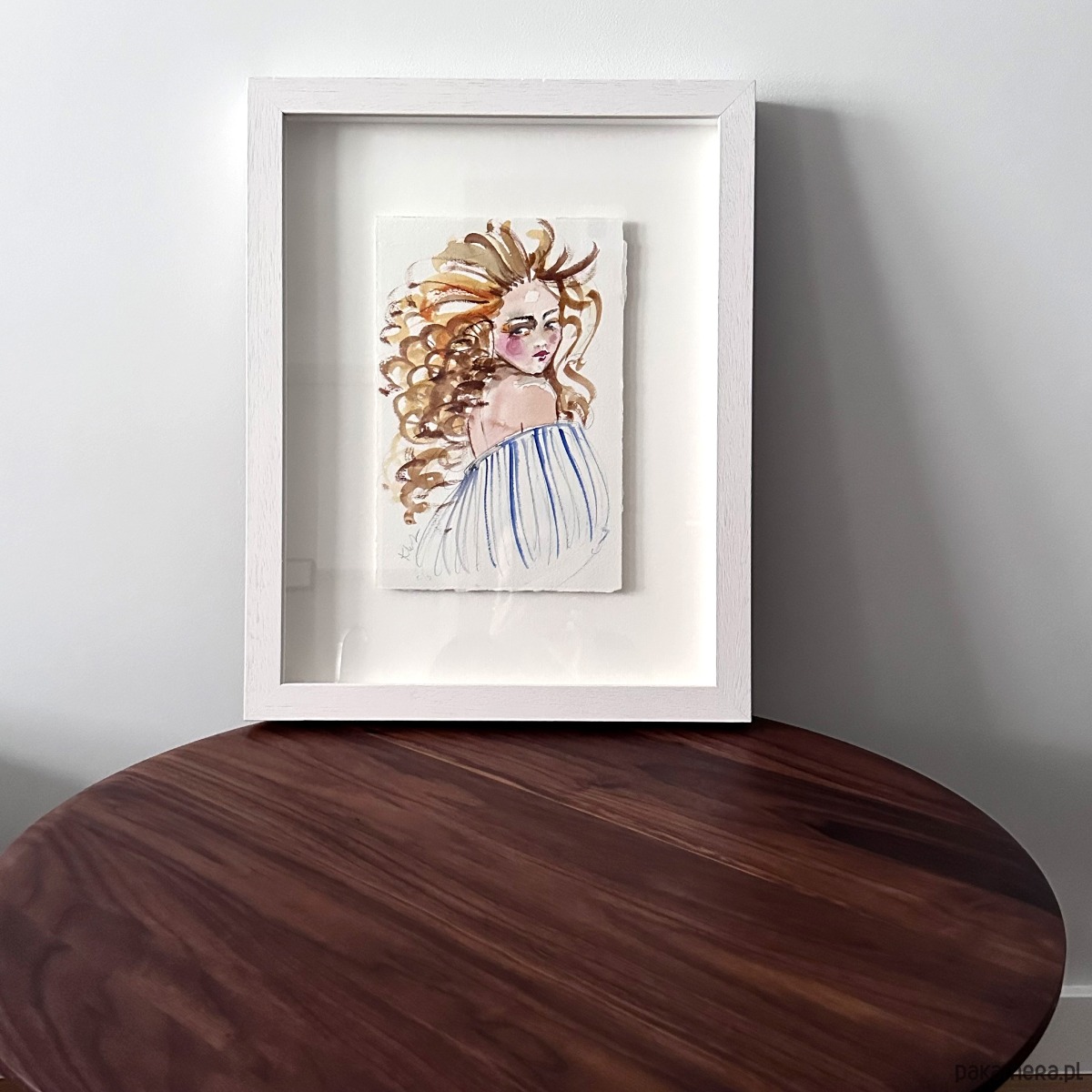 Oryginalny rysunek w technice akwarelowej oprawiony, gotowy do powieszenia.