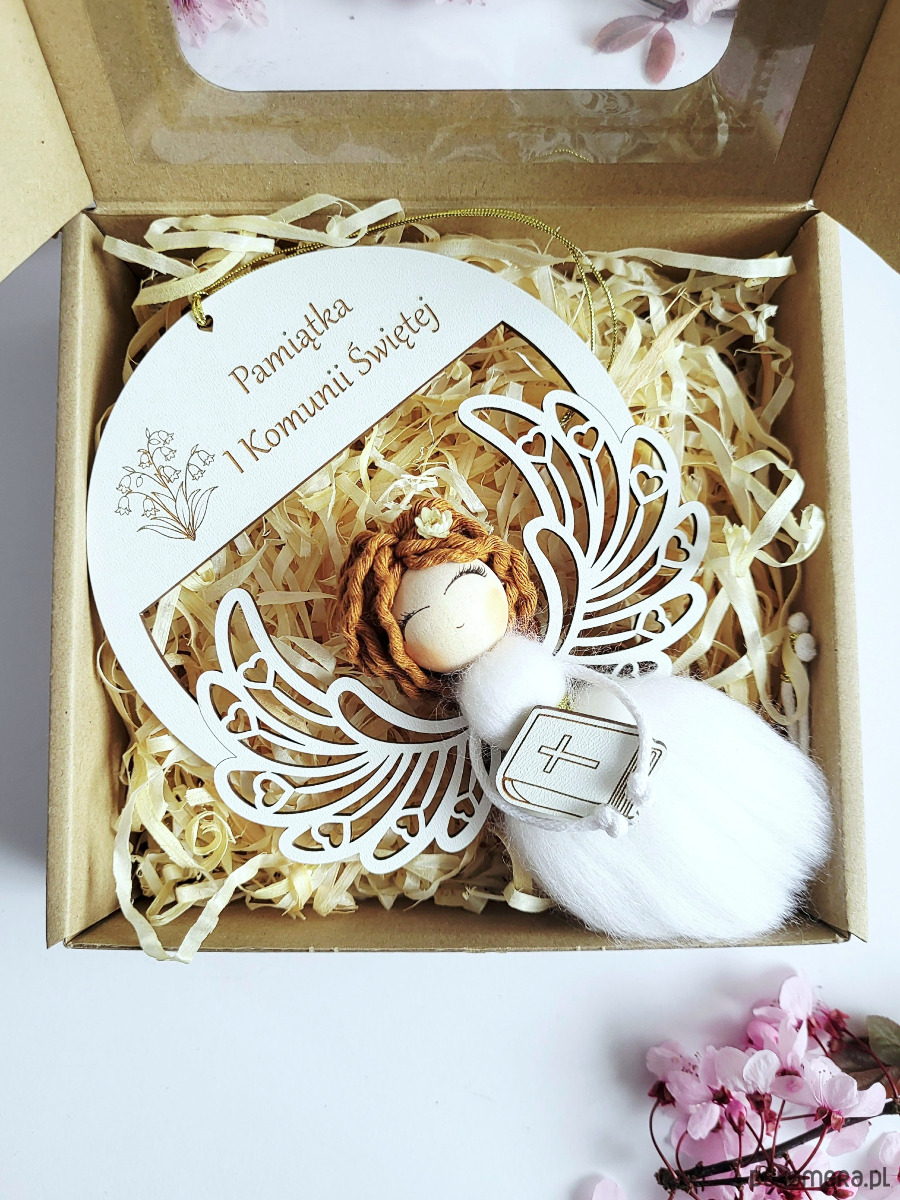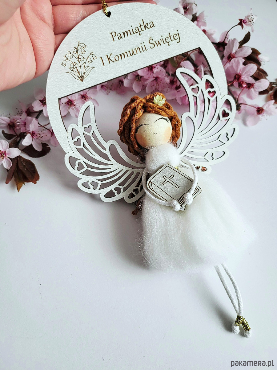 Mały aniołek - uroczy, miękki, puchaty prezent dla dziewczynki lub dla chłopca z okazji Komunii.
