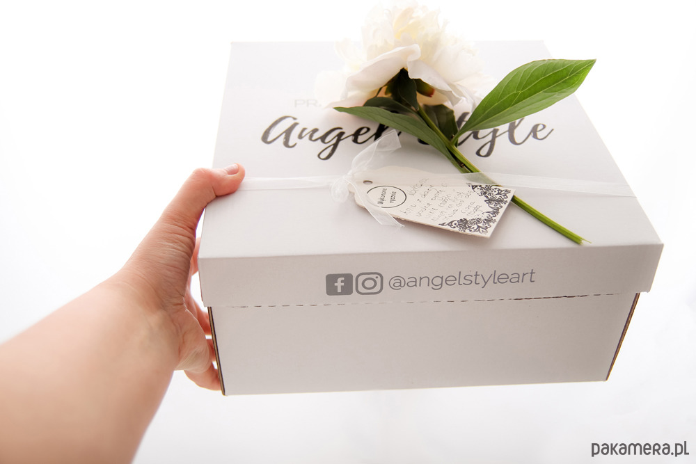 Anioły są zapakowane w ozdobne prezentowe opakowanie, gotowe do wręczenia.