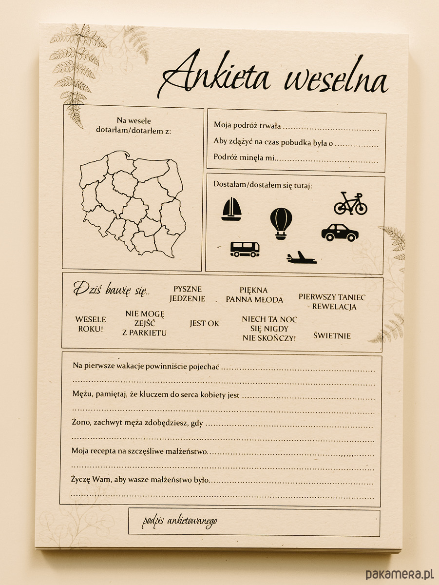 Ankieta weselna, zabawy dla Gości, A5
