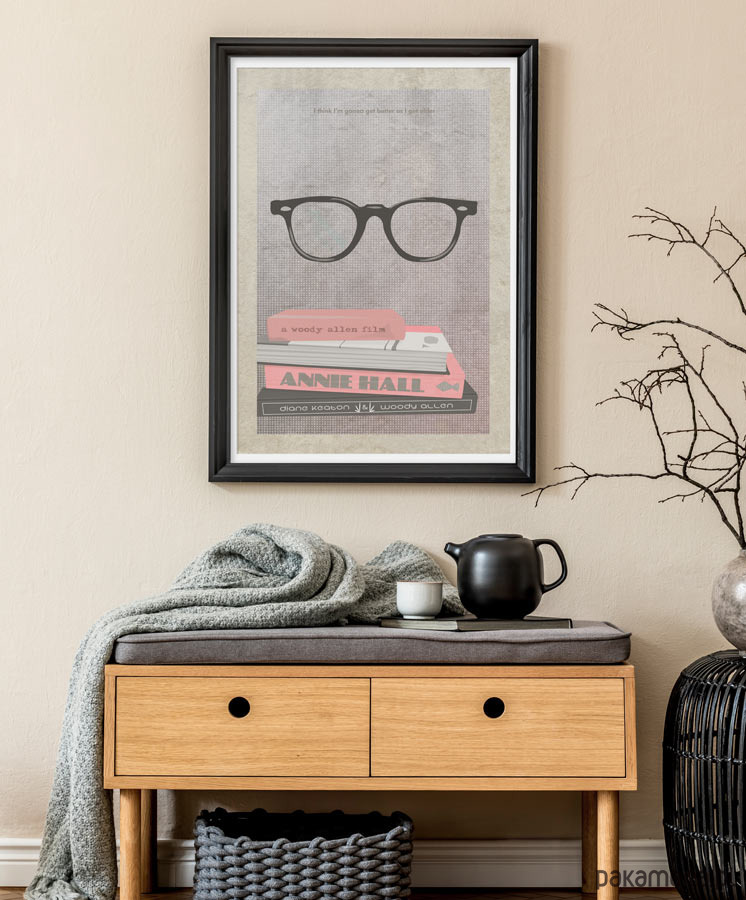 Plakat z autorską grafiką inspirowany filmem Annie Hall, reż. Woody Allen