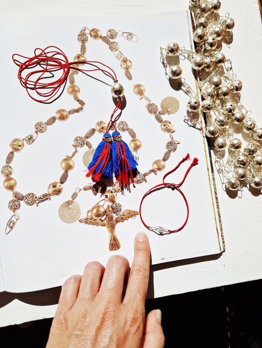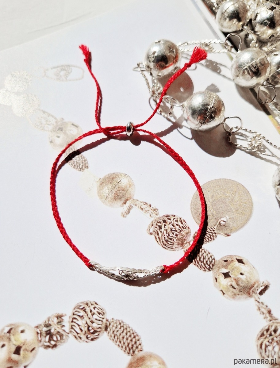 Ręcznie robiona bransoletka ANTIGUA na czerwonym sznurku, inspirowana naszą podróżą do Gwatemali.