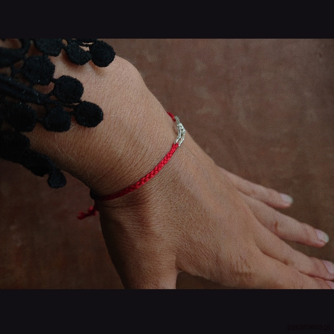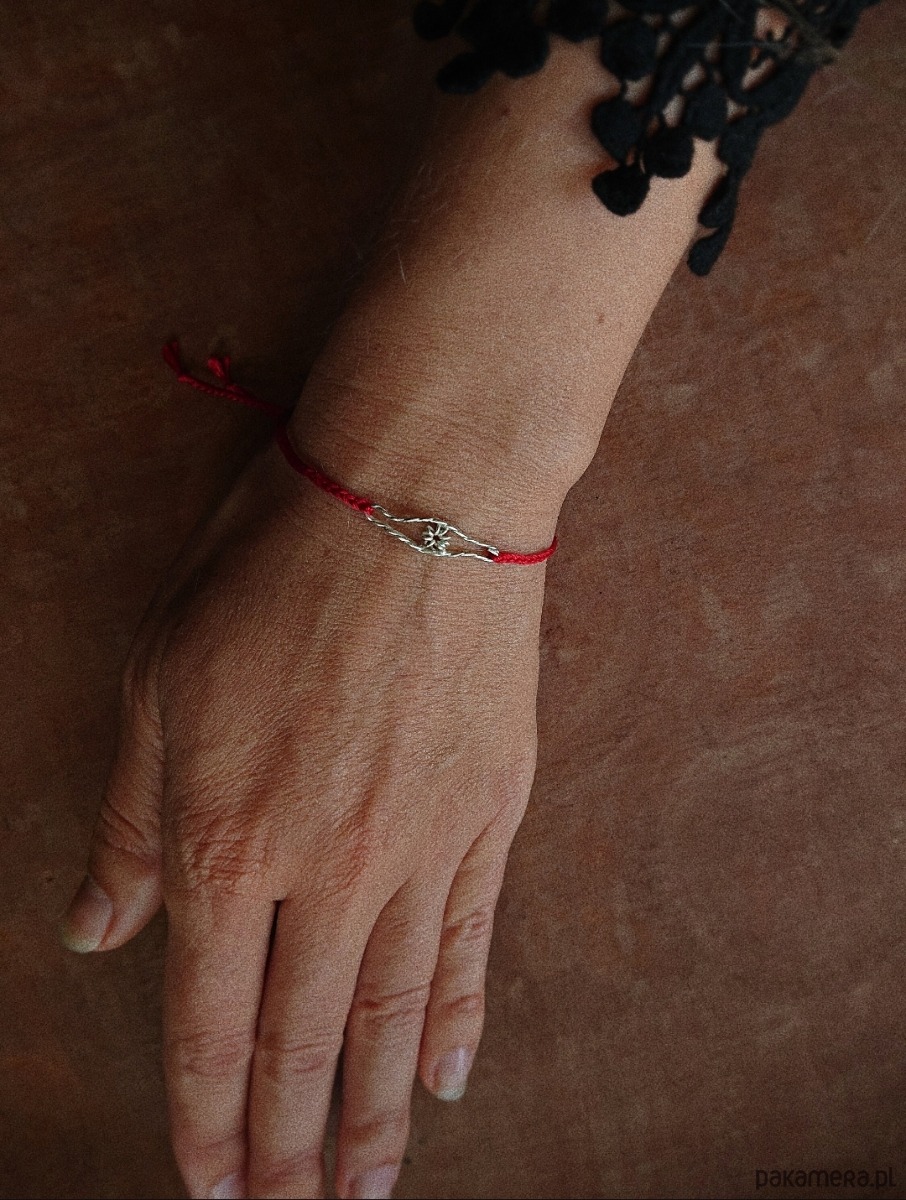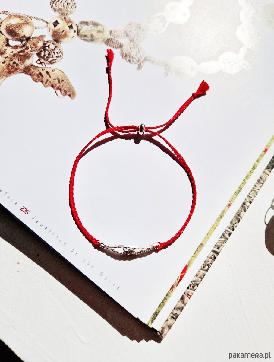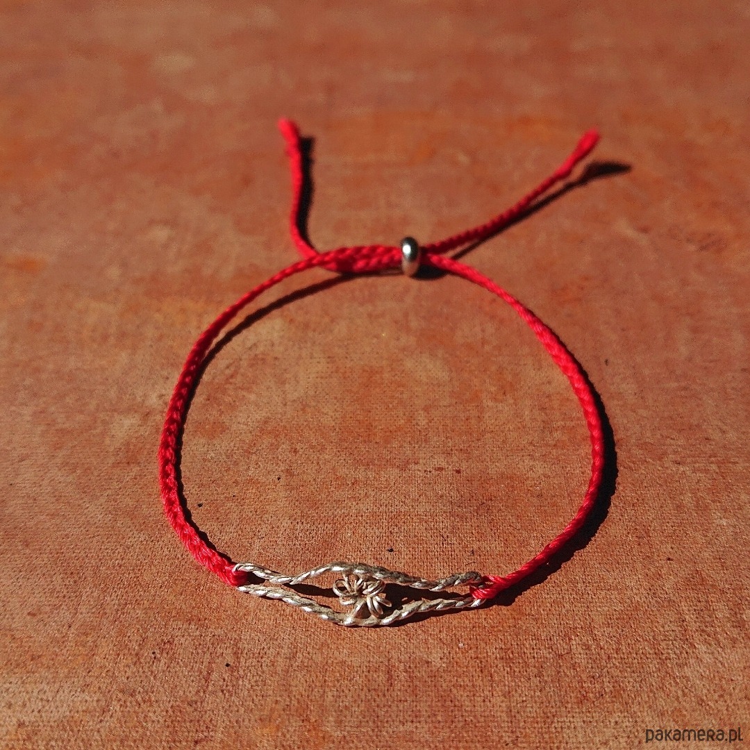 Czerwona nić bransoletki jest zapleciona z czystego jedwabiu w jasnoczerwonym kolorze.