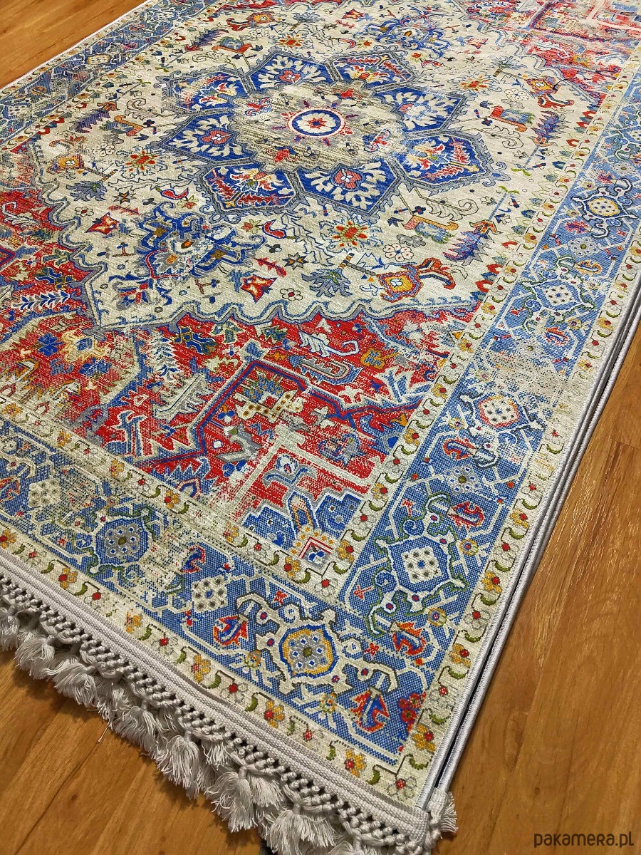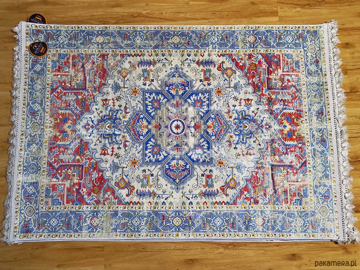 Antybakteryjny dywan o wymiarach 120x180 cm w stylu perskim. Łatwy do utrzymania w czystości, z antypoślizgowym spodem. Idealny dodatek do unikalnych i designerskich wnętrz.