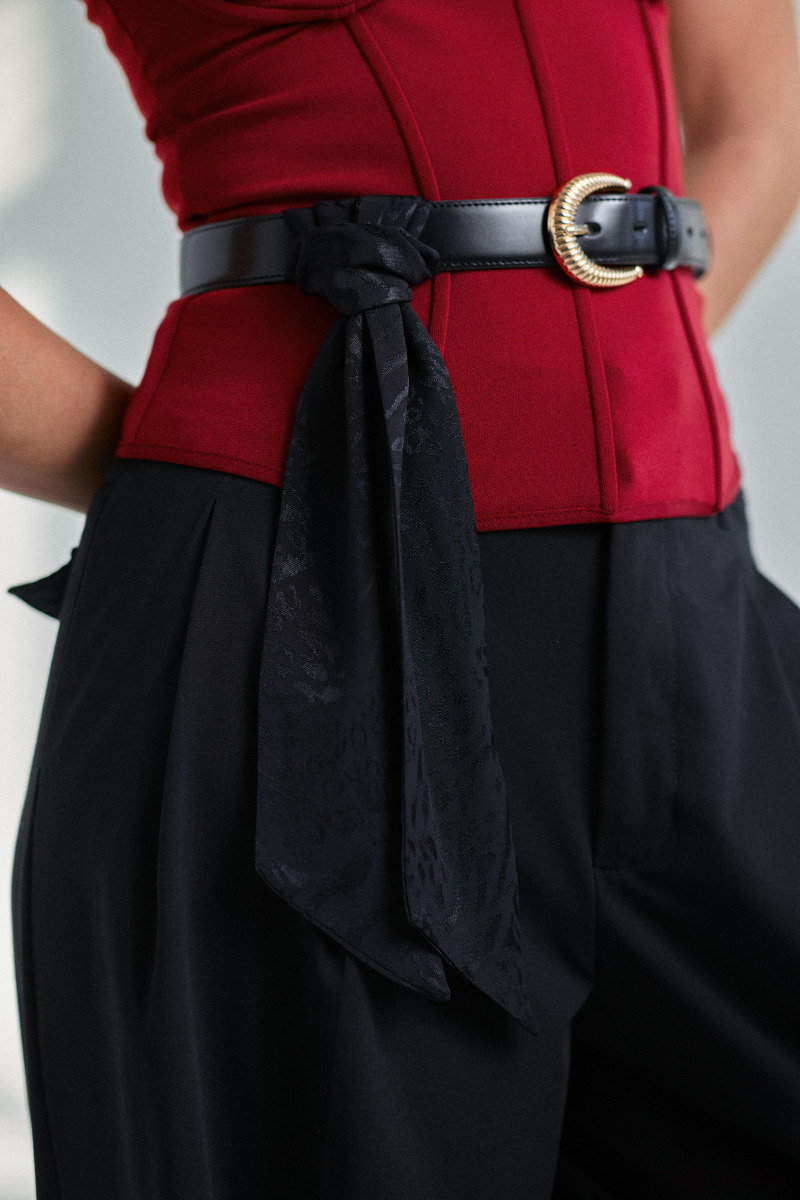 Wykonana z przyjemnej w dotyku wiskozy. To dodatek, który pasuje do eleganckich stylizacji, jak i tych bardziej modowych i odważnych.
