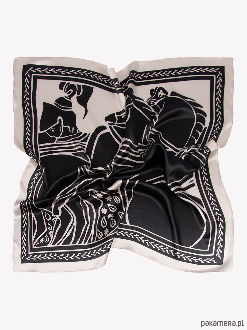 Apaszka jedwabna damska czarna 100% jedwab 70x70 cm