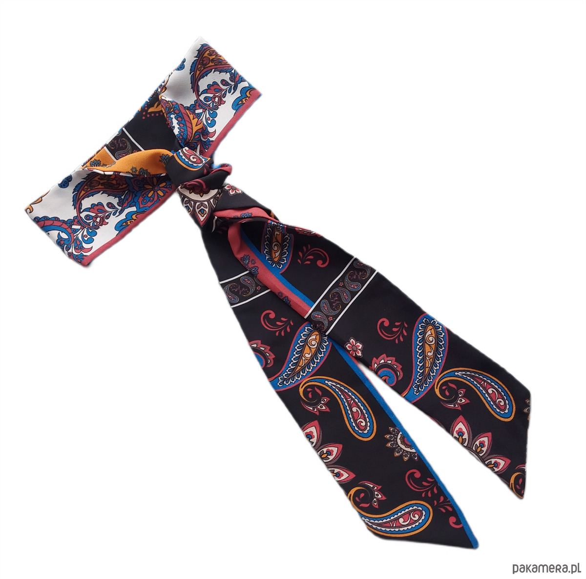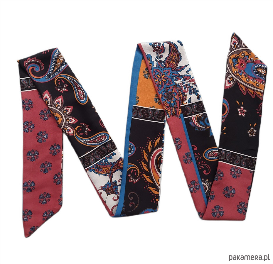 Apaszka Twilly to klasyczny dodatek, który stał się flagowym produktem jednego z najbardziej renomowanych projektantów mody. Reczna robota z wyjątkowym deseniem, który przeplata kolory: czarny, biały, niebieski oraz odcienie pomarańczowego. Apaszka staje się subtelnym akcentem, który wyróżni każdą stylizację. Idealnie komponuje się z białą koszulą, ale również doskonale uzupełnia odcienie koniakowe, pomarańczowe oraz nadaje elegancji dżinsowej koszuli. To wszechstronna opcja, która doda charakteru i wyrafinowania codziennym oraz wieczorowym zestawom.