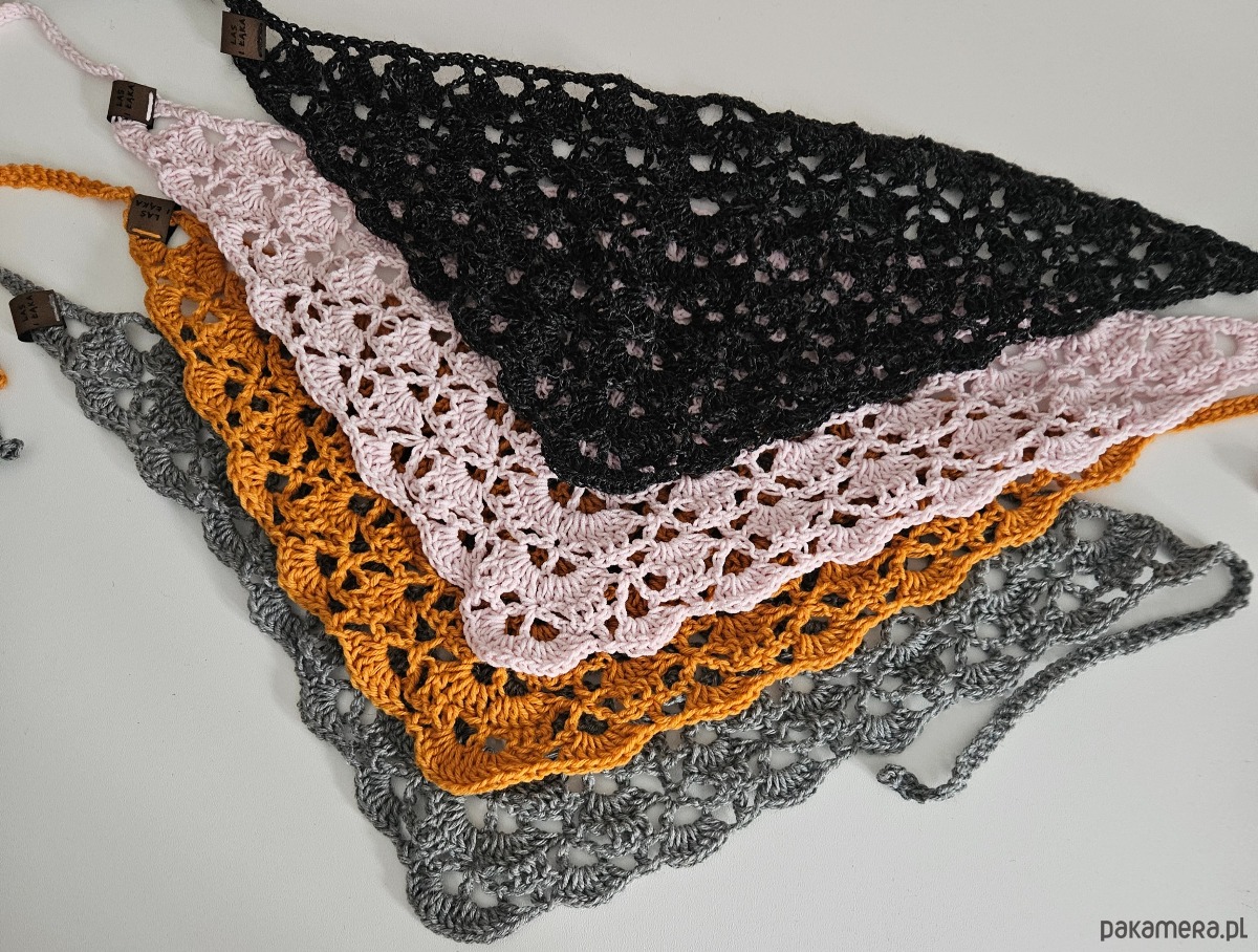 Wełniana apaszka bandama – ręcznie robiona na szydełku