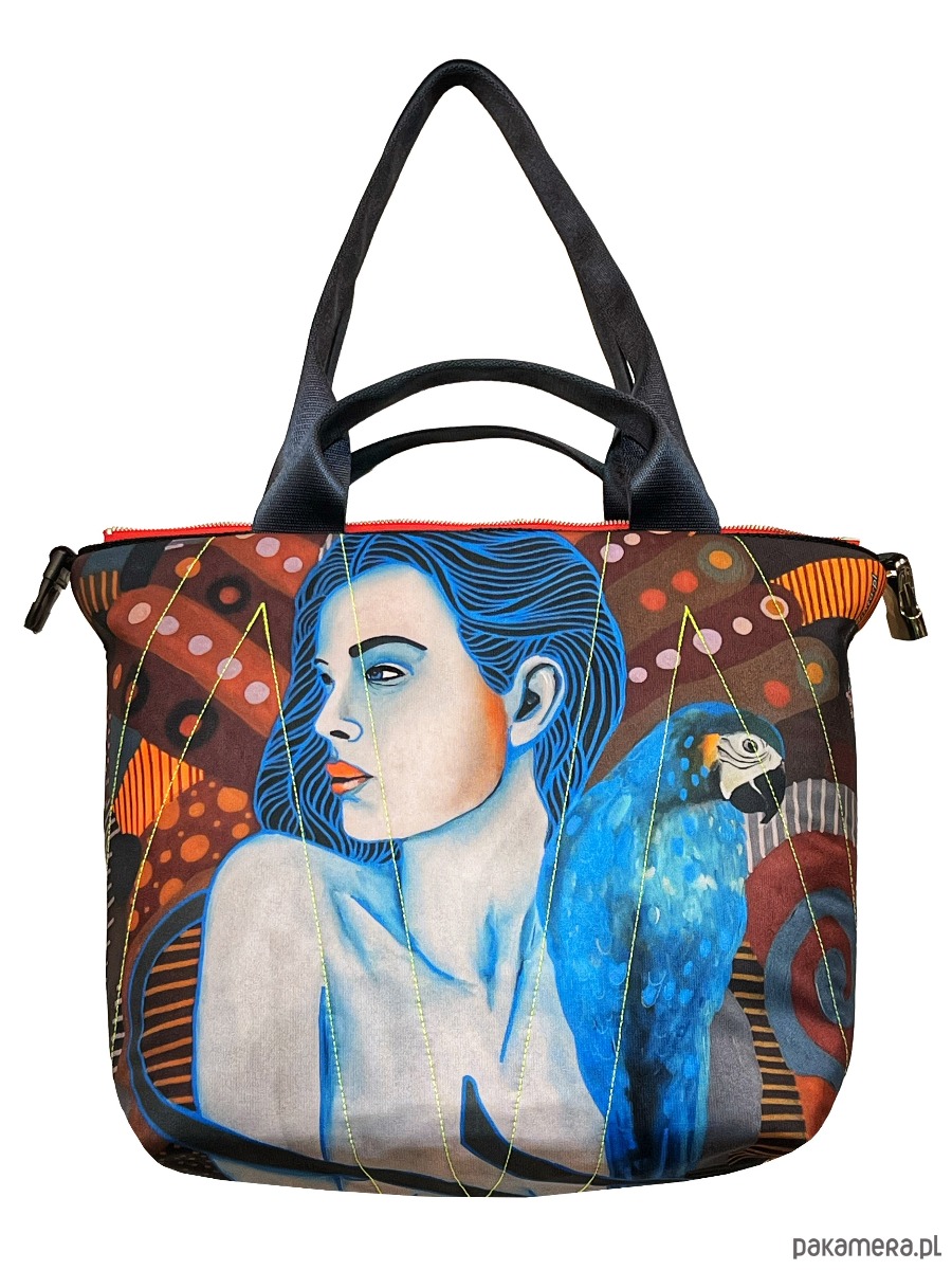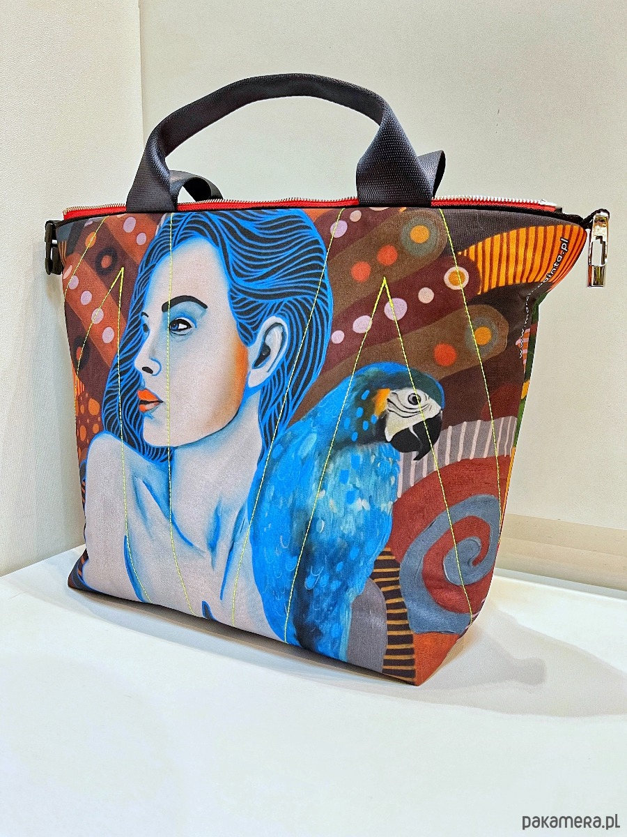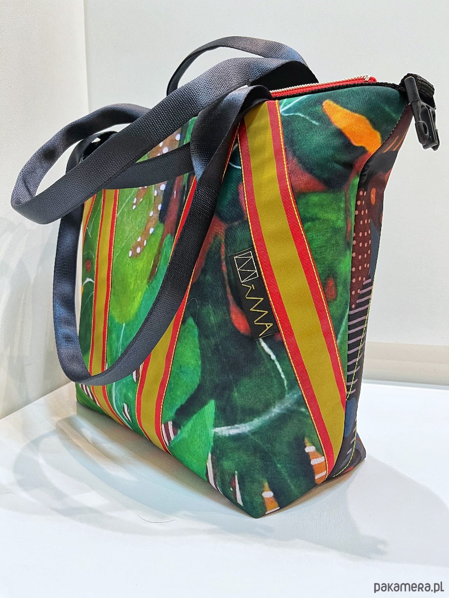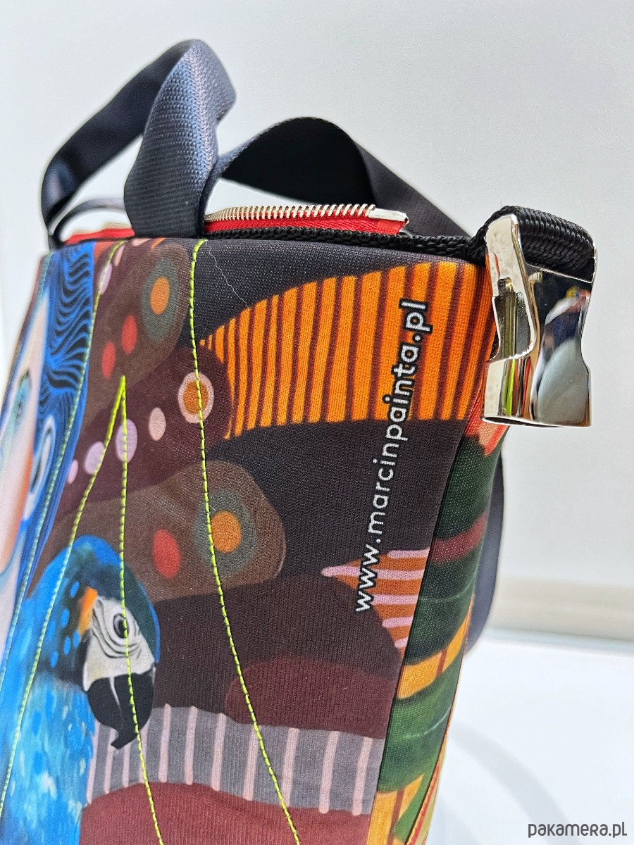 torba z printem pracy Marcina Painty, można prać w 30*C, można prasować, wykonana w jednym egzemplarzu, dwie możliwości zapinania, zamek / zatrzask, trzy kieszenie wewnątrz, wymiar 46x44 cm.