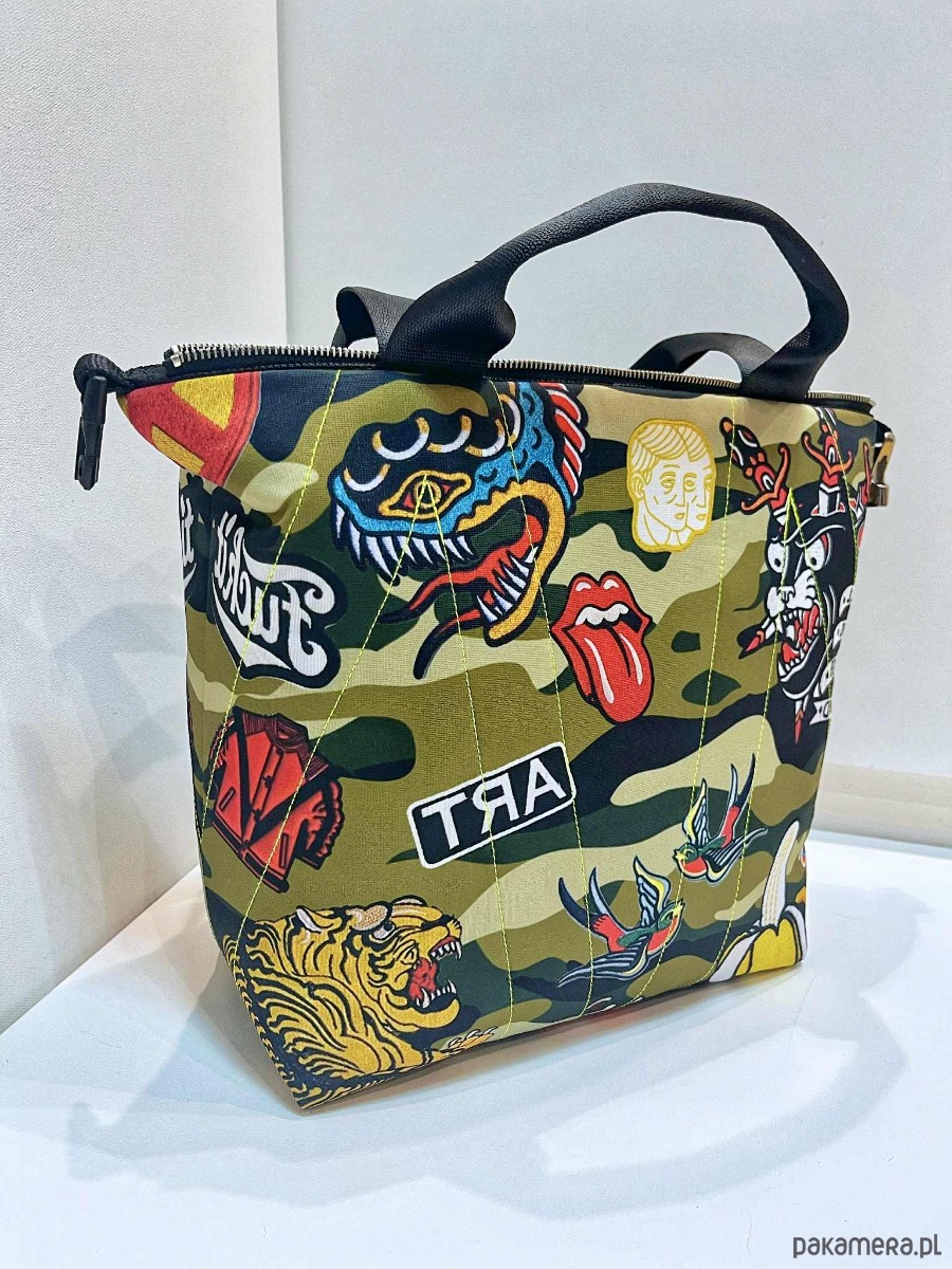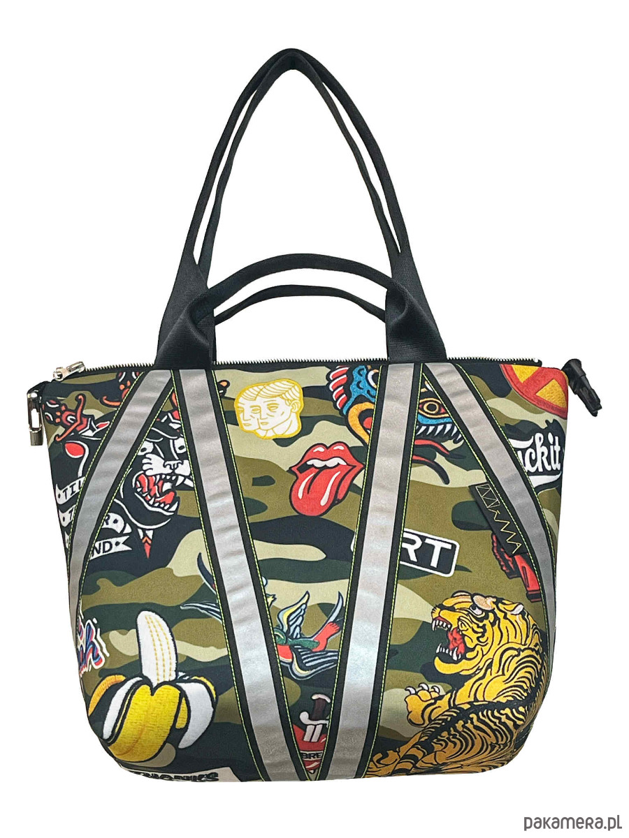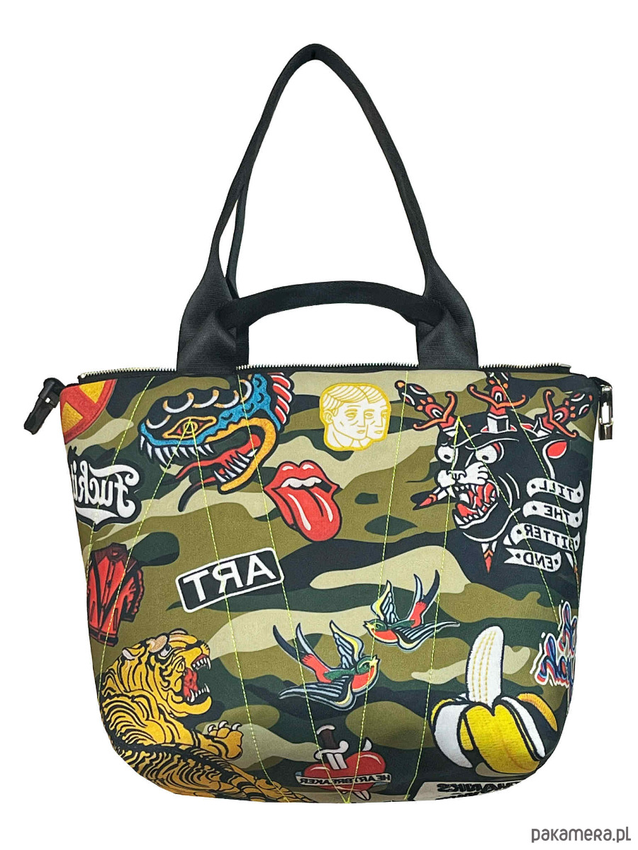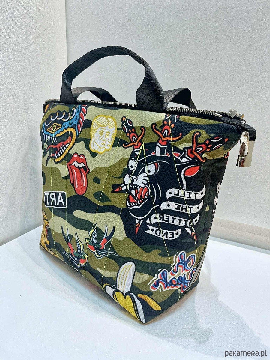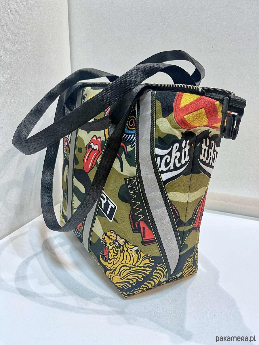 torba z printem pracy Szymona Kurpiewskiego,  można prać w 30*C,  można  prasować, wykonana w  jednym  egzemplarzu, dwie  możliwości  zapinania, zamek / zatrzask, trzy kieszenie wewnątrz,  wymiar 46x44 cm, zawieszka do podpisu.
