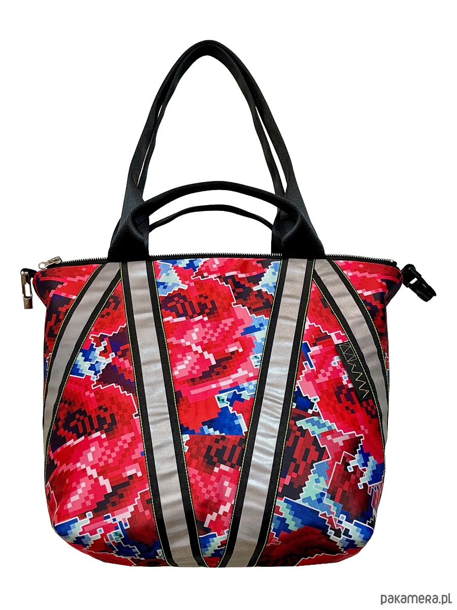 torba z printem pracy Szymona Kurpiewskiego, można prać w 30*C, można prasować, wykonana w jednym egzemplarzu, dwie możliwości zapinania, zamek / zatrzask, trzy kieszenie wewnątrz, wymiar 46x44 cm, zawieszka do podpisu.
