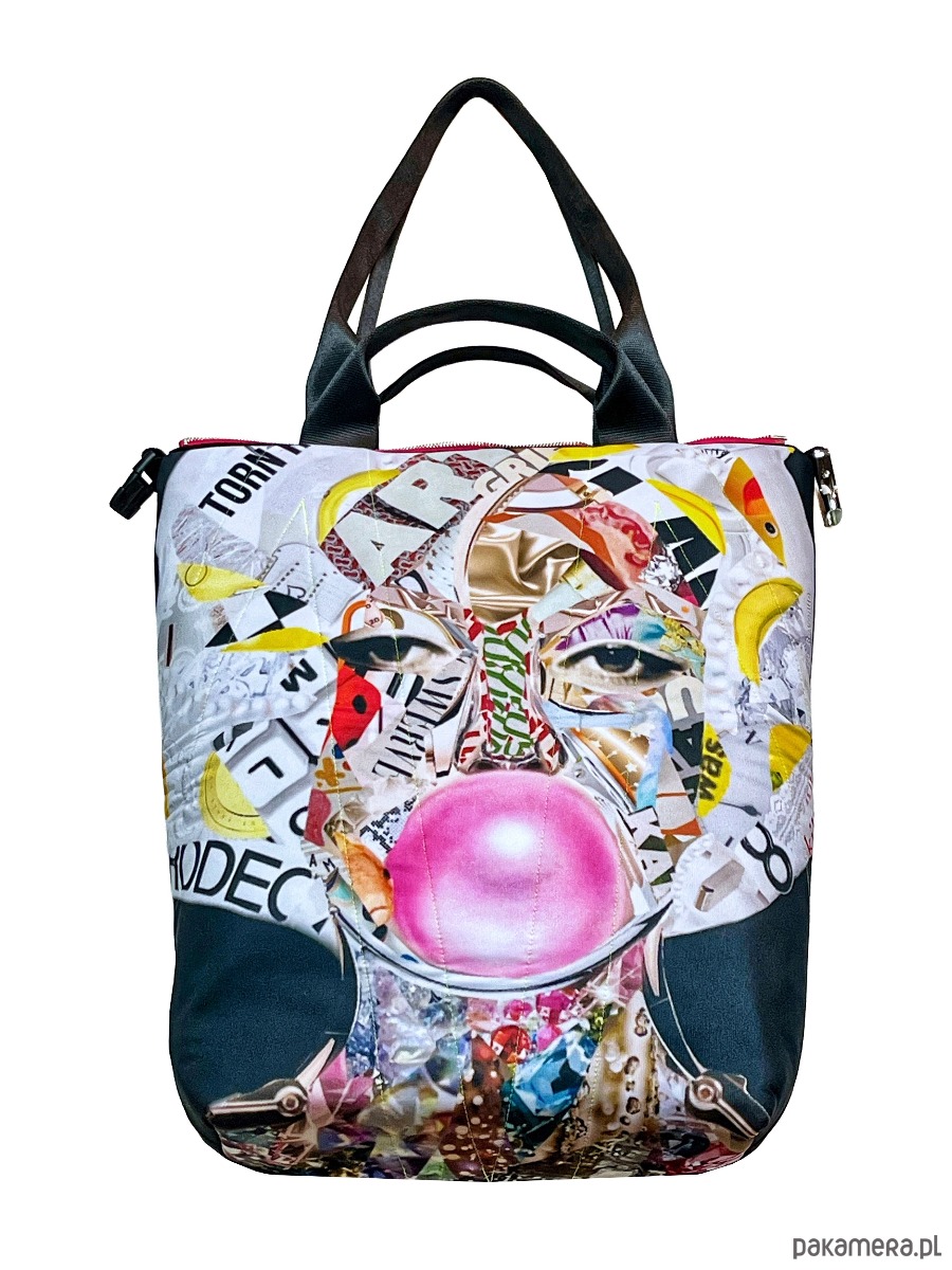 torba z limitowanym printem pracy Torn Revenue z Manchester Anglia (Marilyn Monroe) faśma fluo i zamek kolorowy, można prać w 30*C, można prasować, wykonana w jednym niepowtarzalnym zestawieniu zamków i taśm fluo, dwie możliwości zapinania, zamek / zatrzask, trzy kieszenie wewnątrz, wymiar 46x56 cm, uszy wykonane z pasów samochodowych...