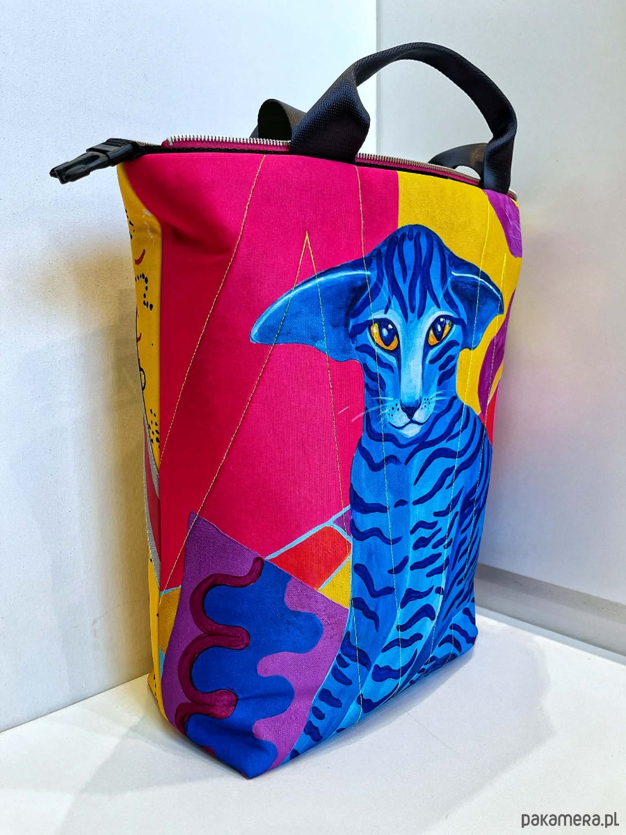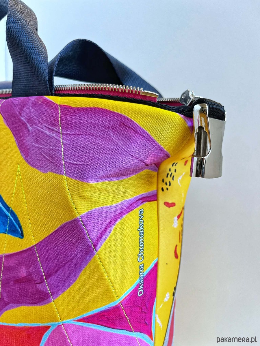 torba z printem pracy Oksany Chumakovej, można prać w 30*C, można prasować, wykonana w jednym egzemplarzu, dwie możliwości zapinania, zamek / zatrzask, trzy kieszenie wewnątrz, wymiar 46x55 cm.
