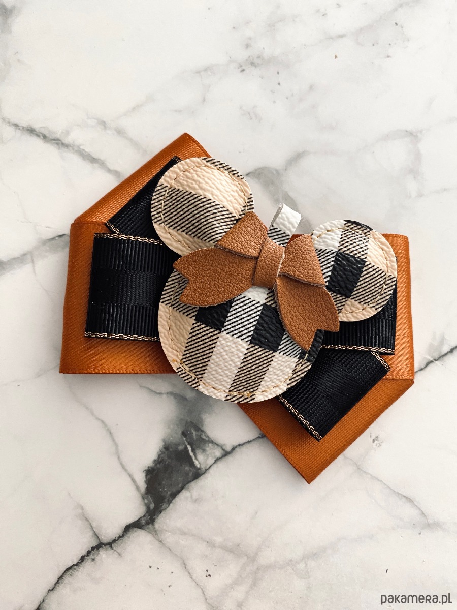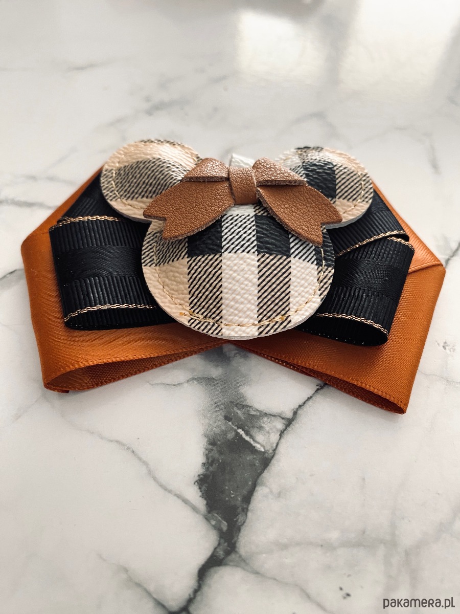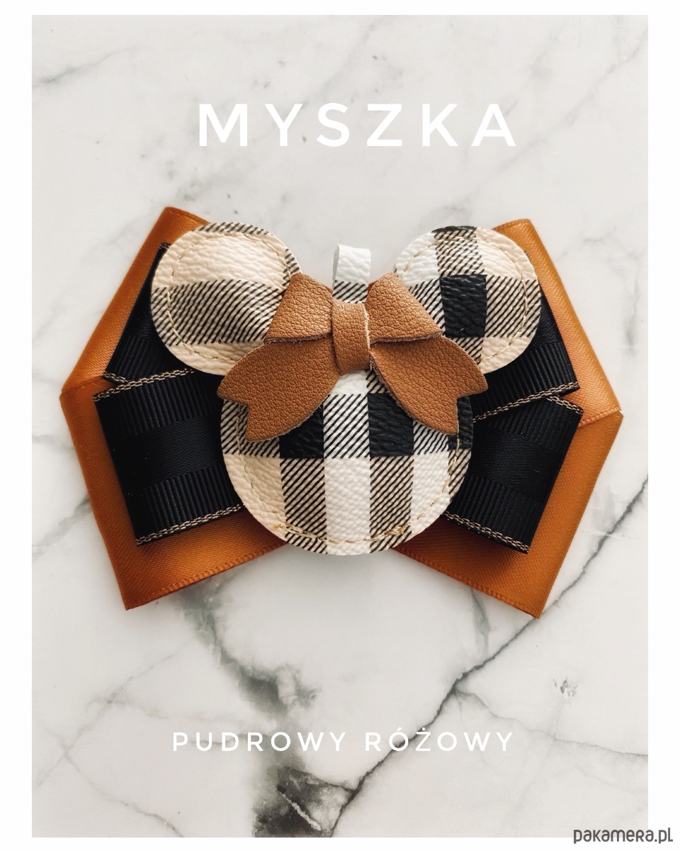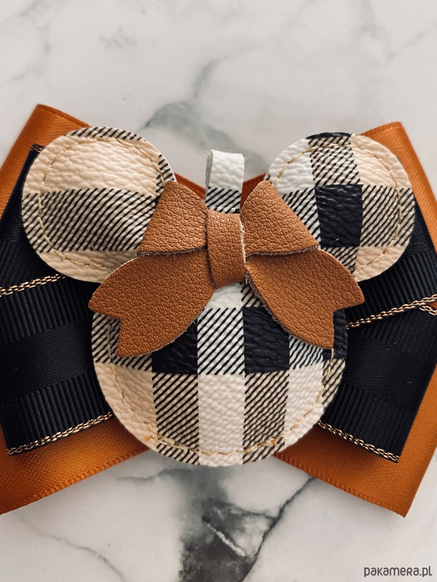 Piękna i mega ciekawa ozdoba na środku. Myszka 3d wykonana z r skóry ekologicznej, z modnym kraciastym motywem.