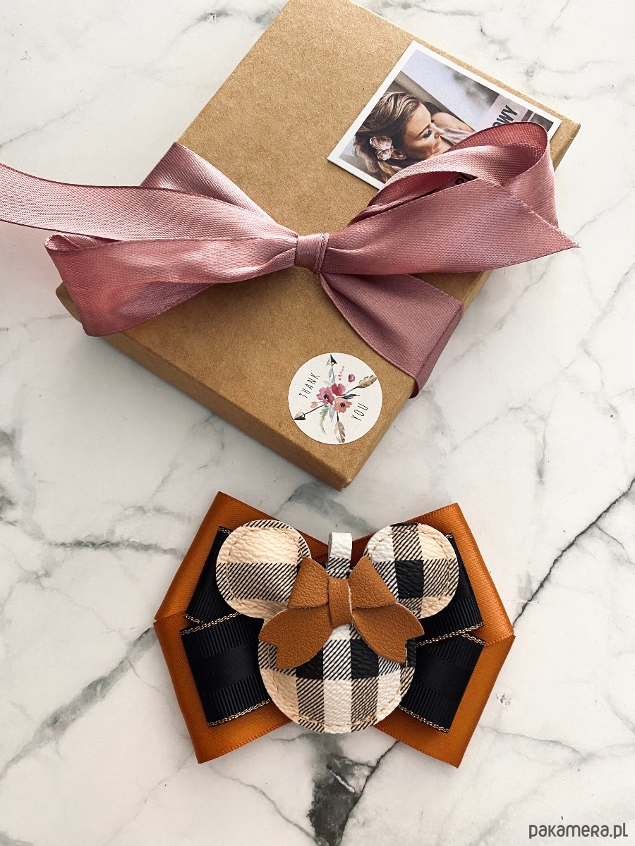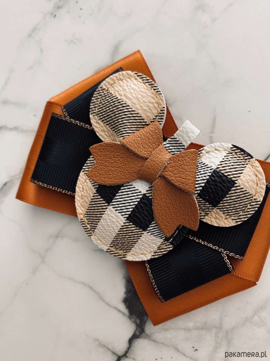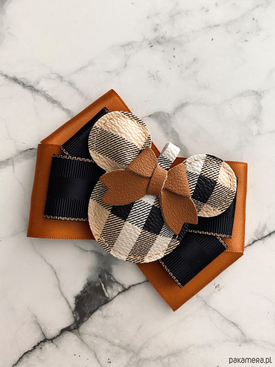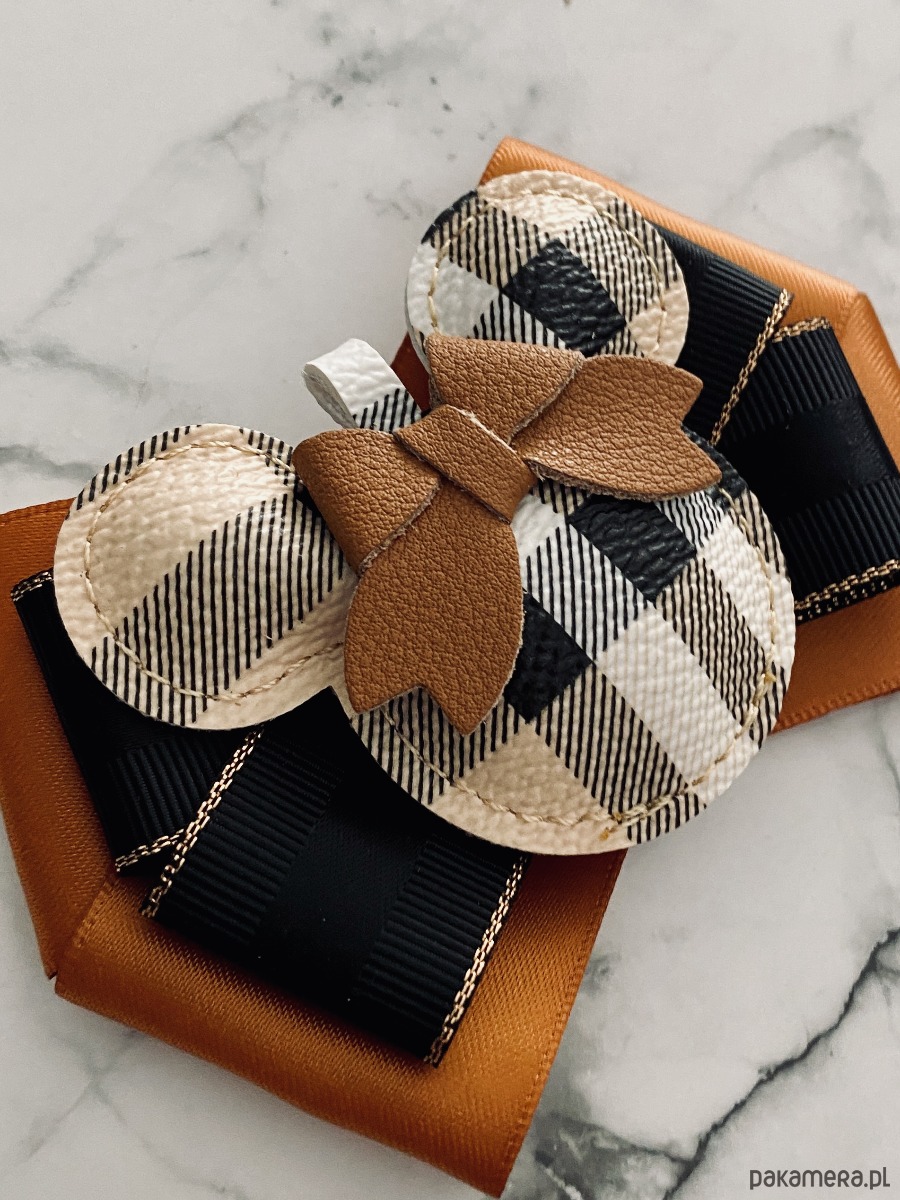 Piękna i mega ciekawa ozdoba na środku. Myszka 3d wykonana z r skóry ekologicznej, z modnym kraciastym motywem.