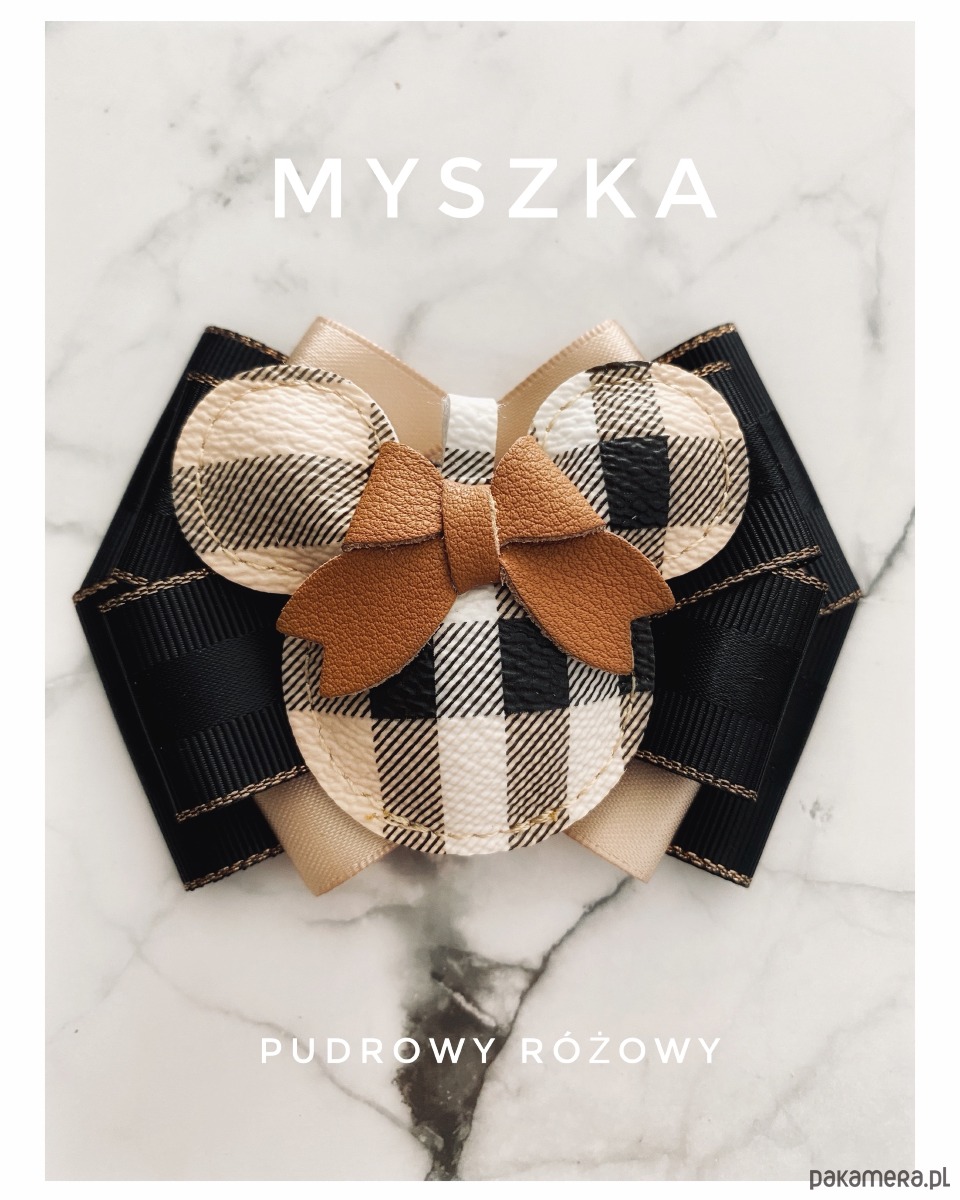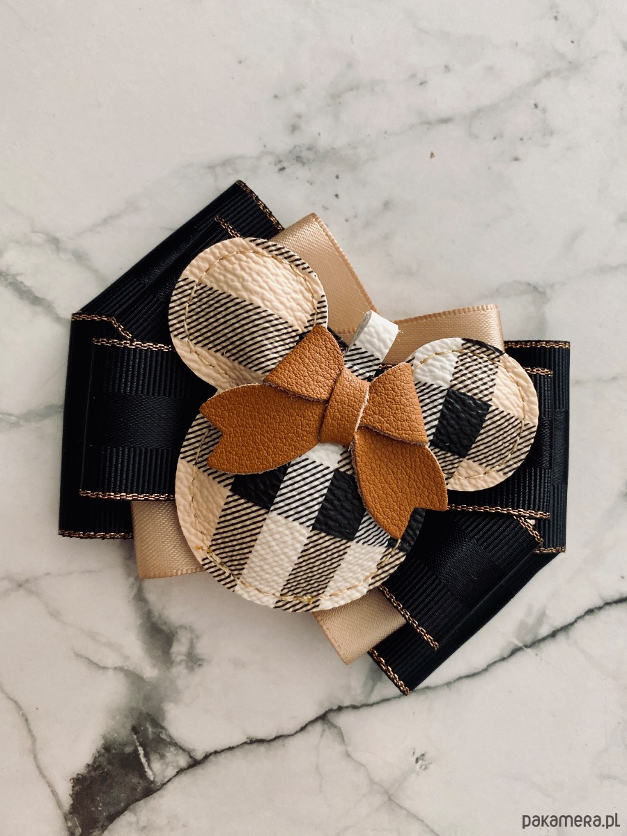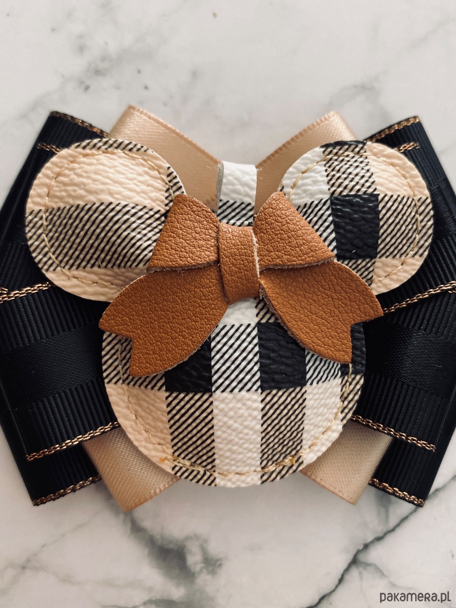 Piękna i mega ciekawa ozdoba na środku. Myszka 3d wykonana z r skóry ekologicznej, z modnym kraciastym motywem.