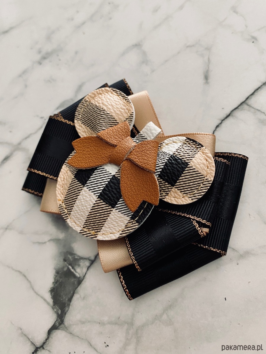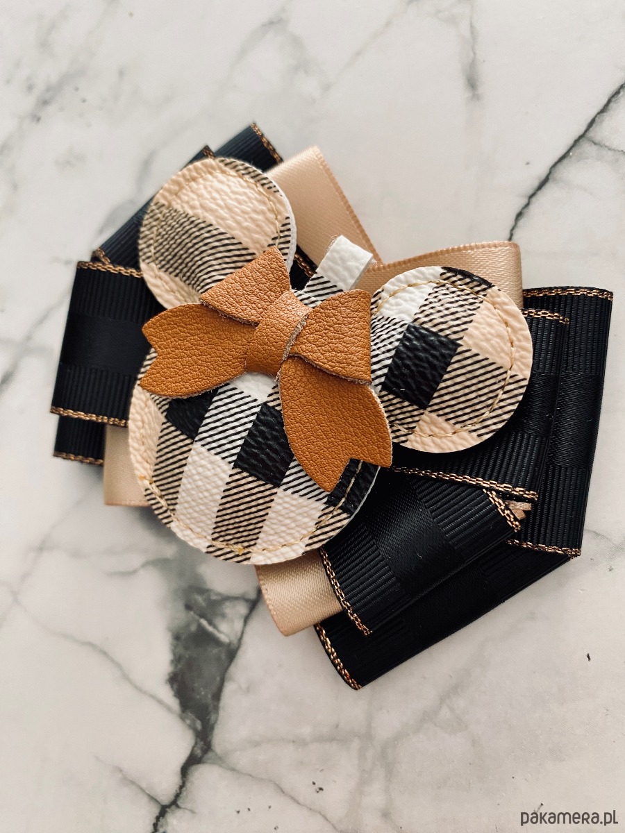 Broszka wykonana z wysokiej jakości taśm i dodatków.