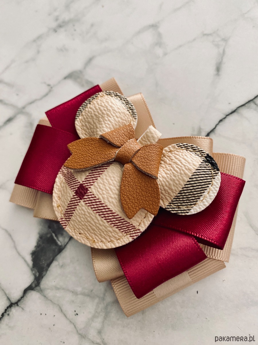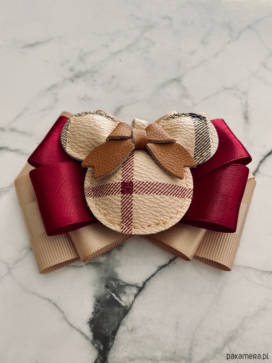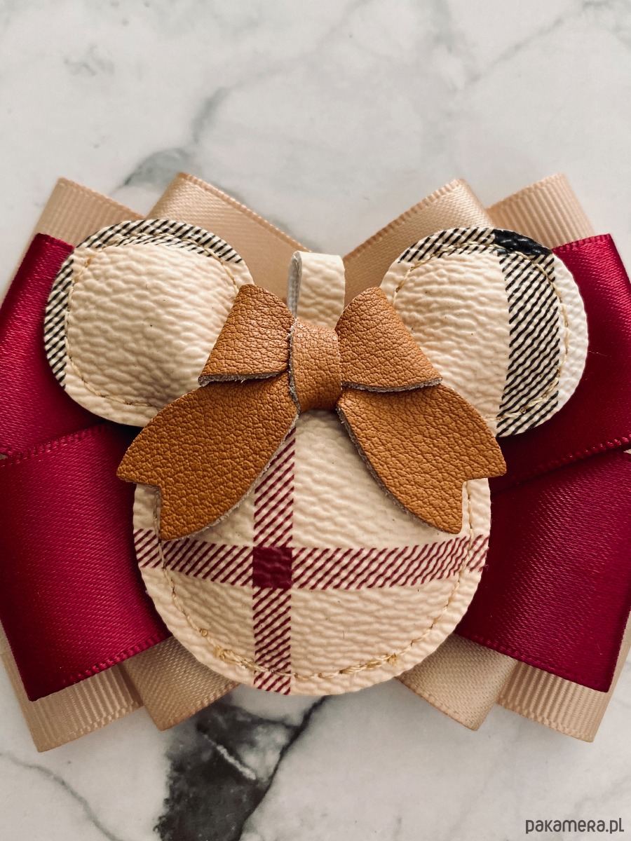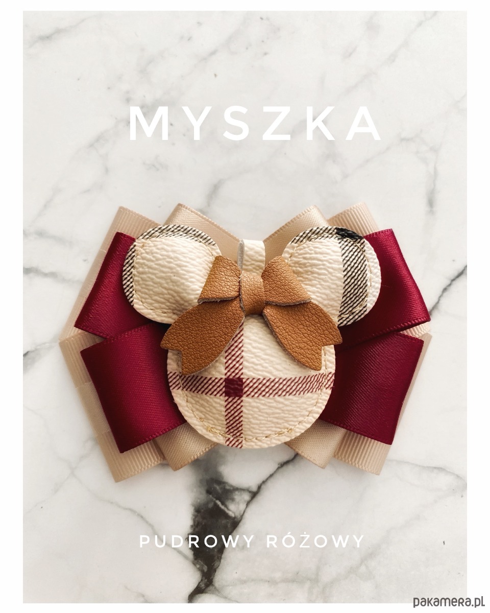 Piękna i mega ciekawa ozdoba na środku. Myszka 3d wykonana z r skóry ekologicznej, z modnym kraciastym motywem.