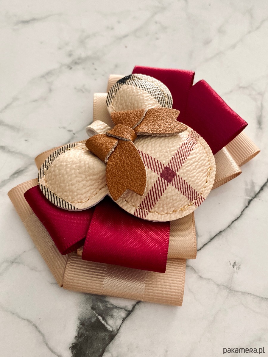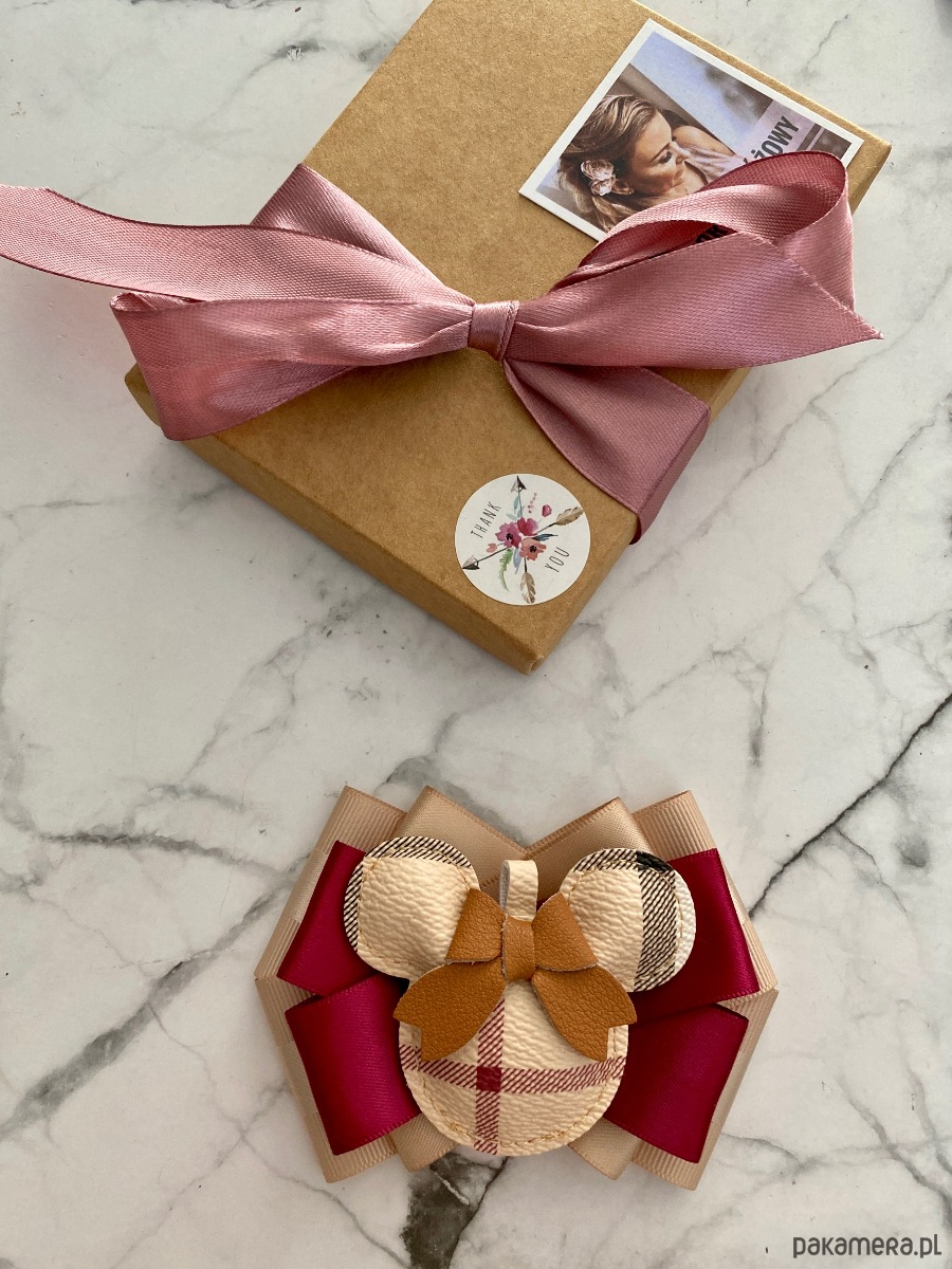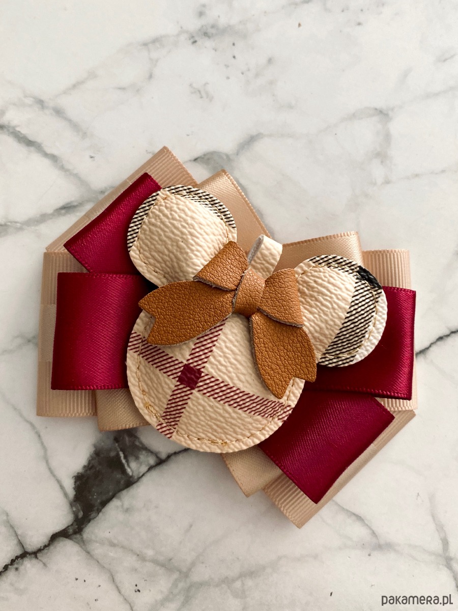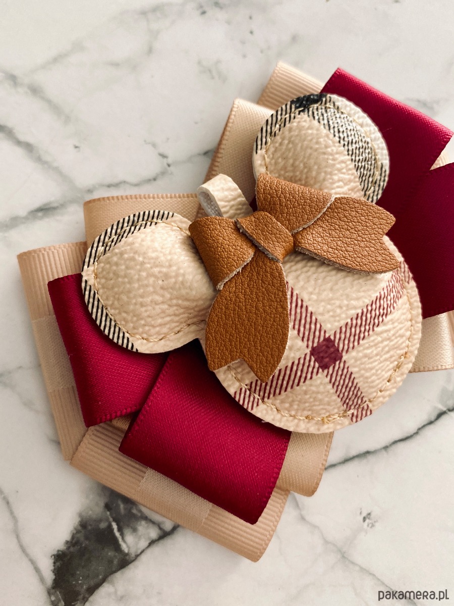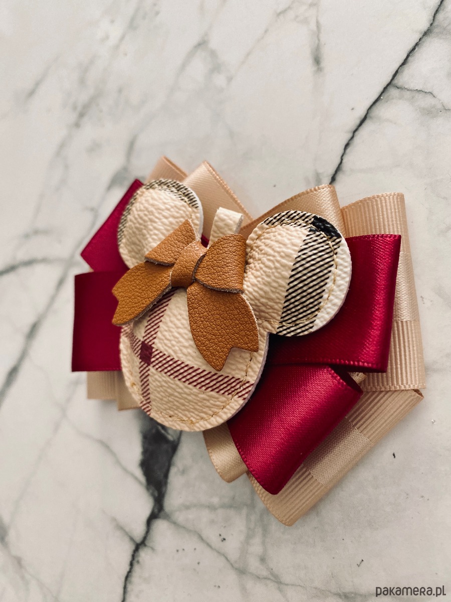 Piękna i mega ciekawa ozdoba na środku. Myszka 3d wykonana z r skóry ekologicznej, z modnym kraciastym motywem.