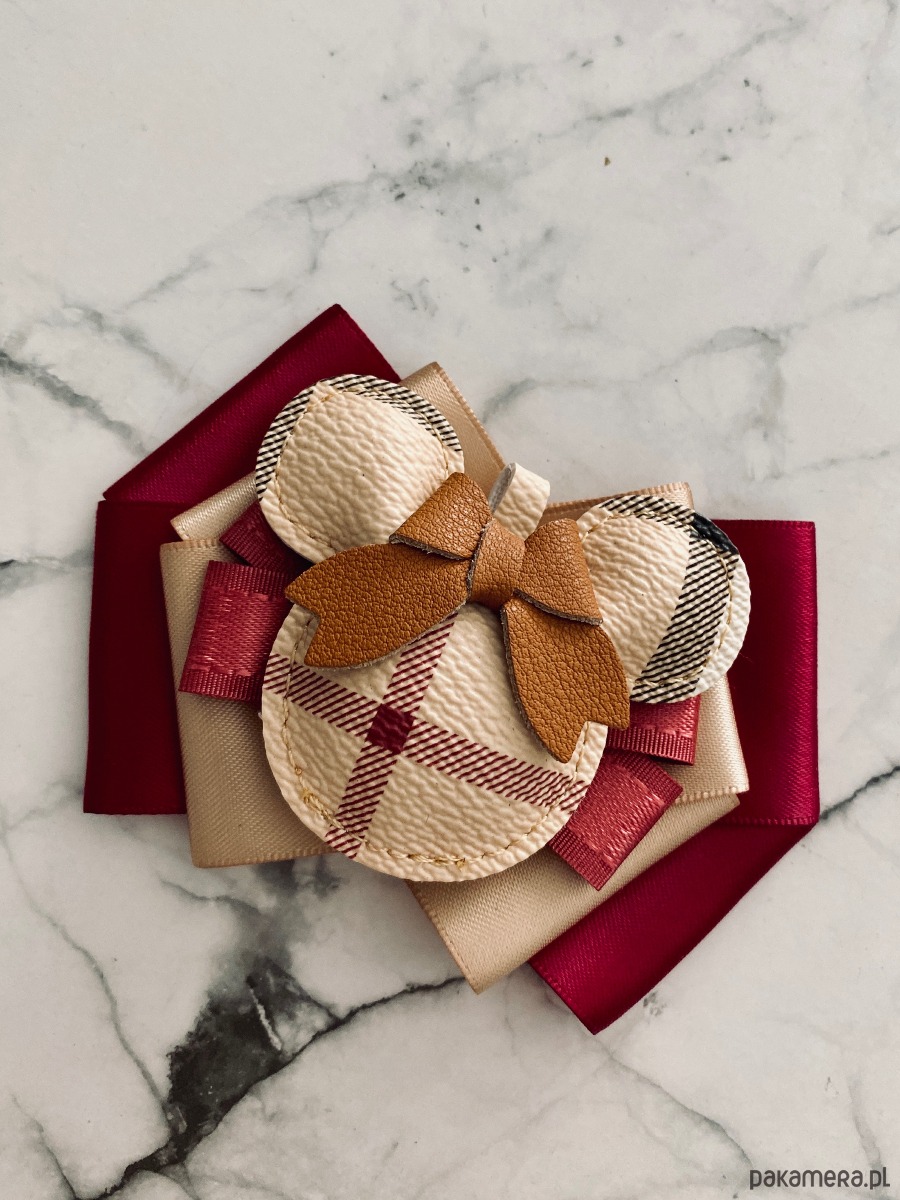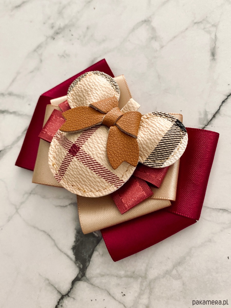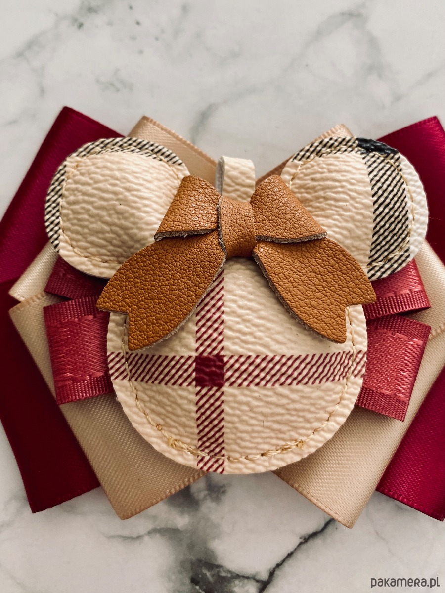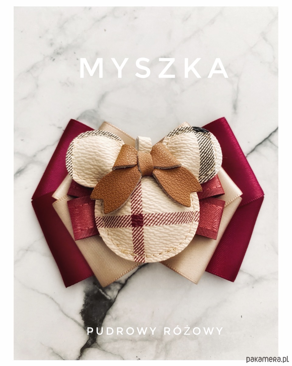 Piękna i mega ciekawa ozdoba na środku. Myszka 3d wykonana z r skóry ekologicznej, z modnym kraciastym motywem.