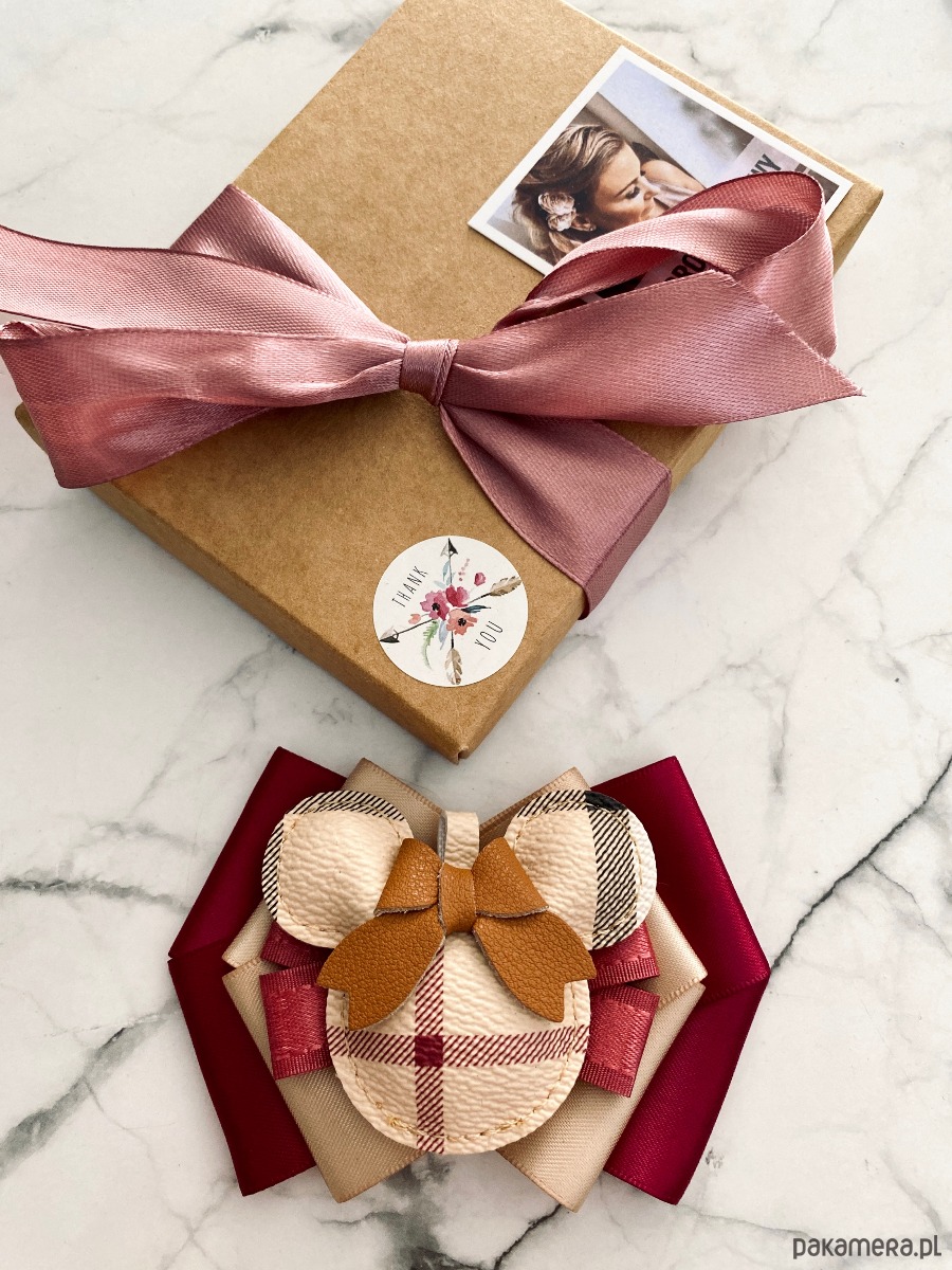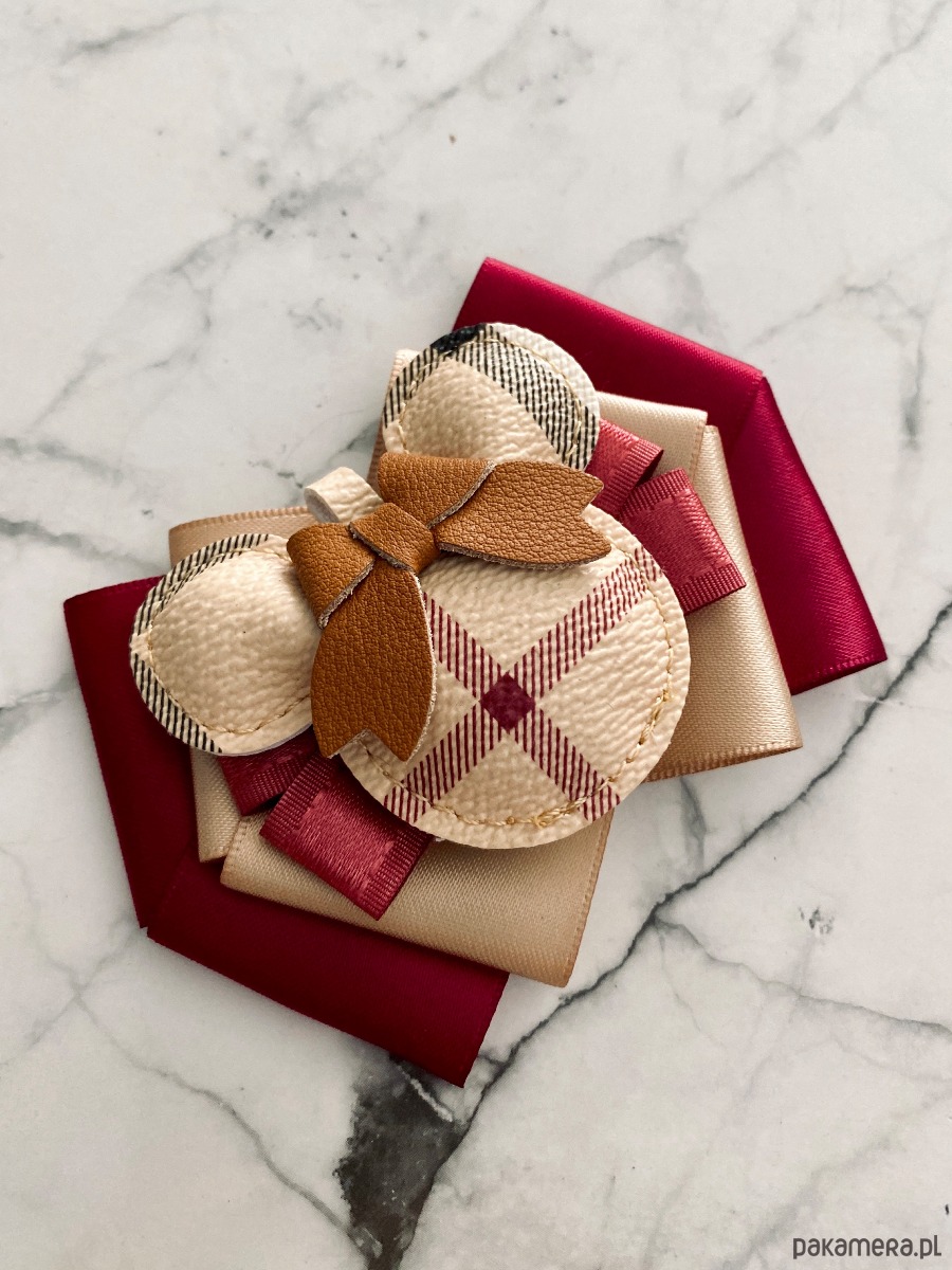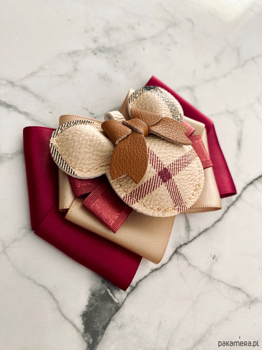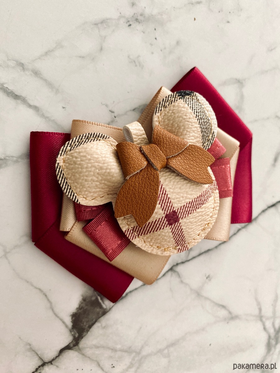 Piękna i mega ciekawa ozdoba na środku. Myszka 3d wykonana z r skóry ekologicznej, z modnym kraciastym motywem.
