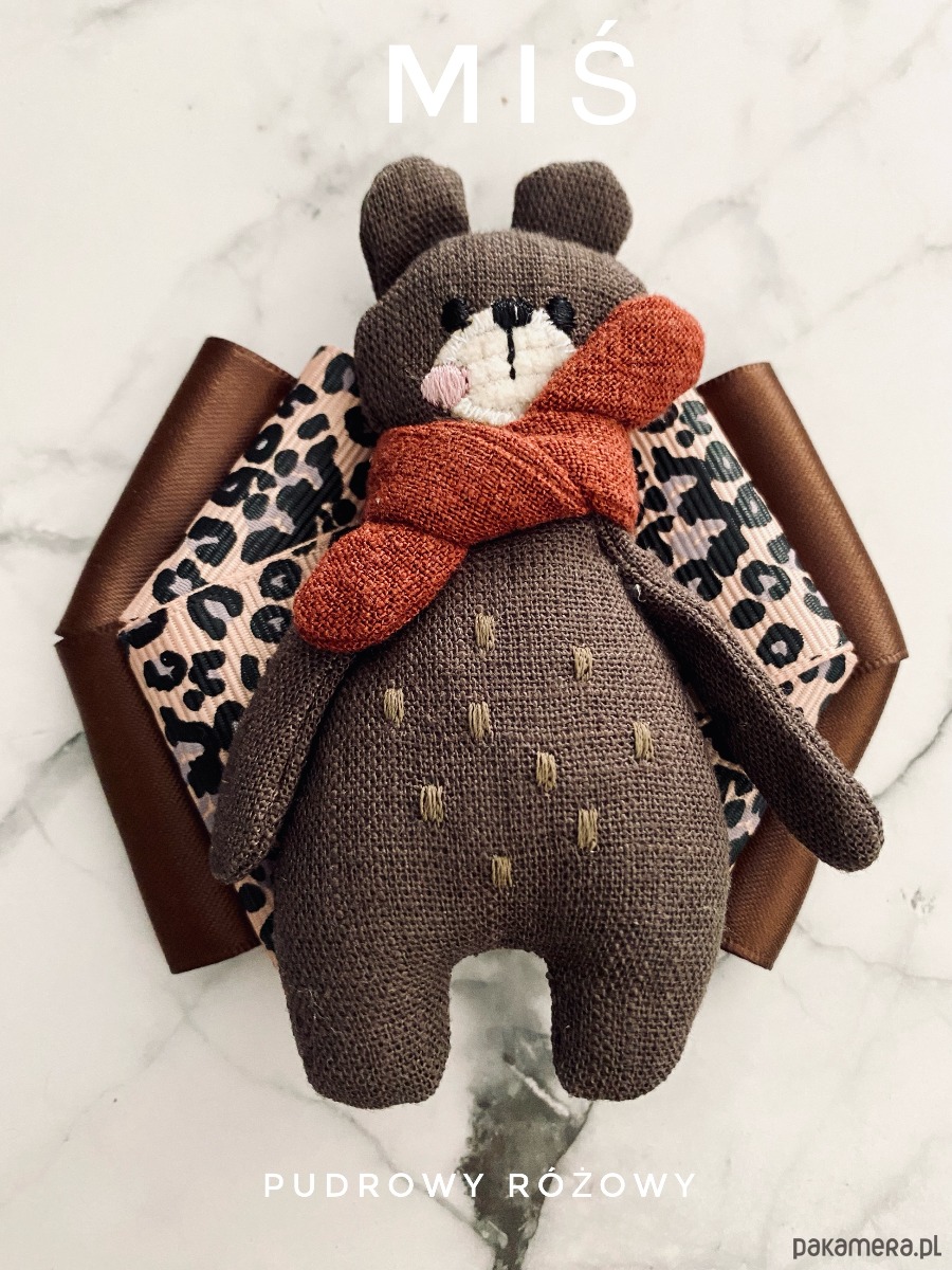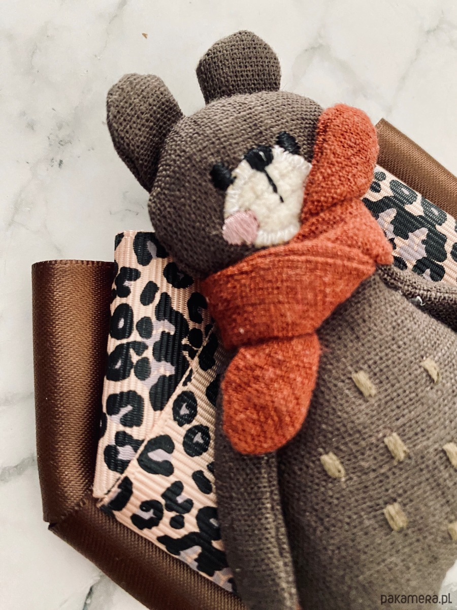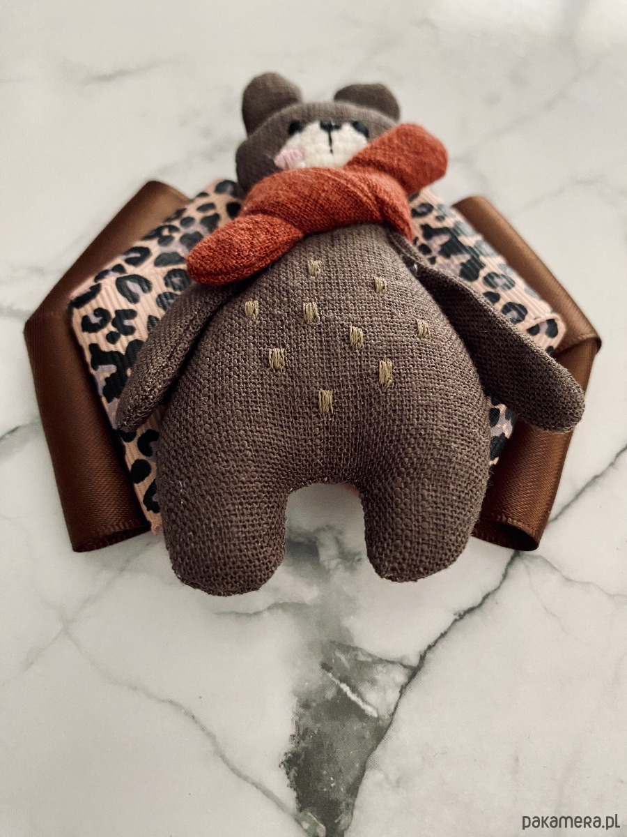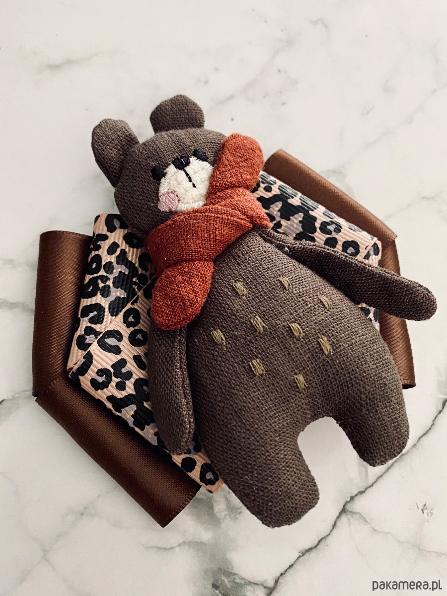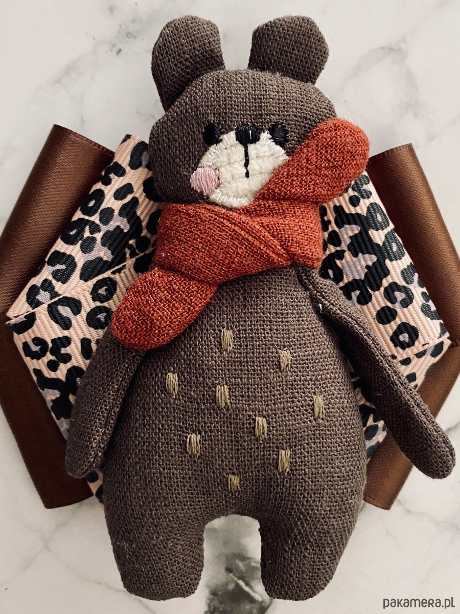 Miś 3d z czadowym szalikiem, wszystko w kolorach brązu.