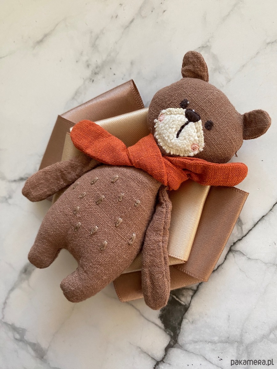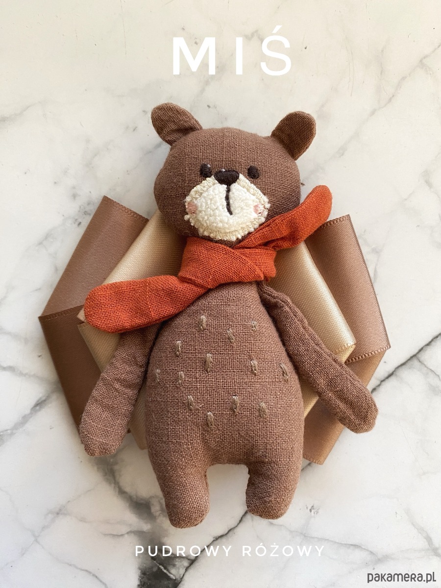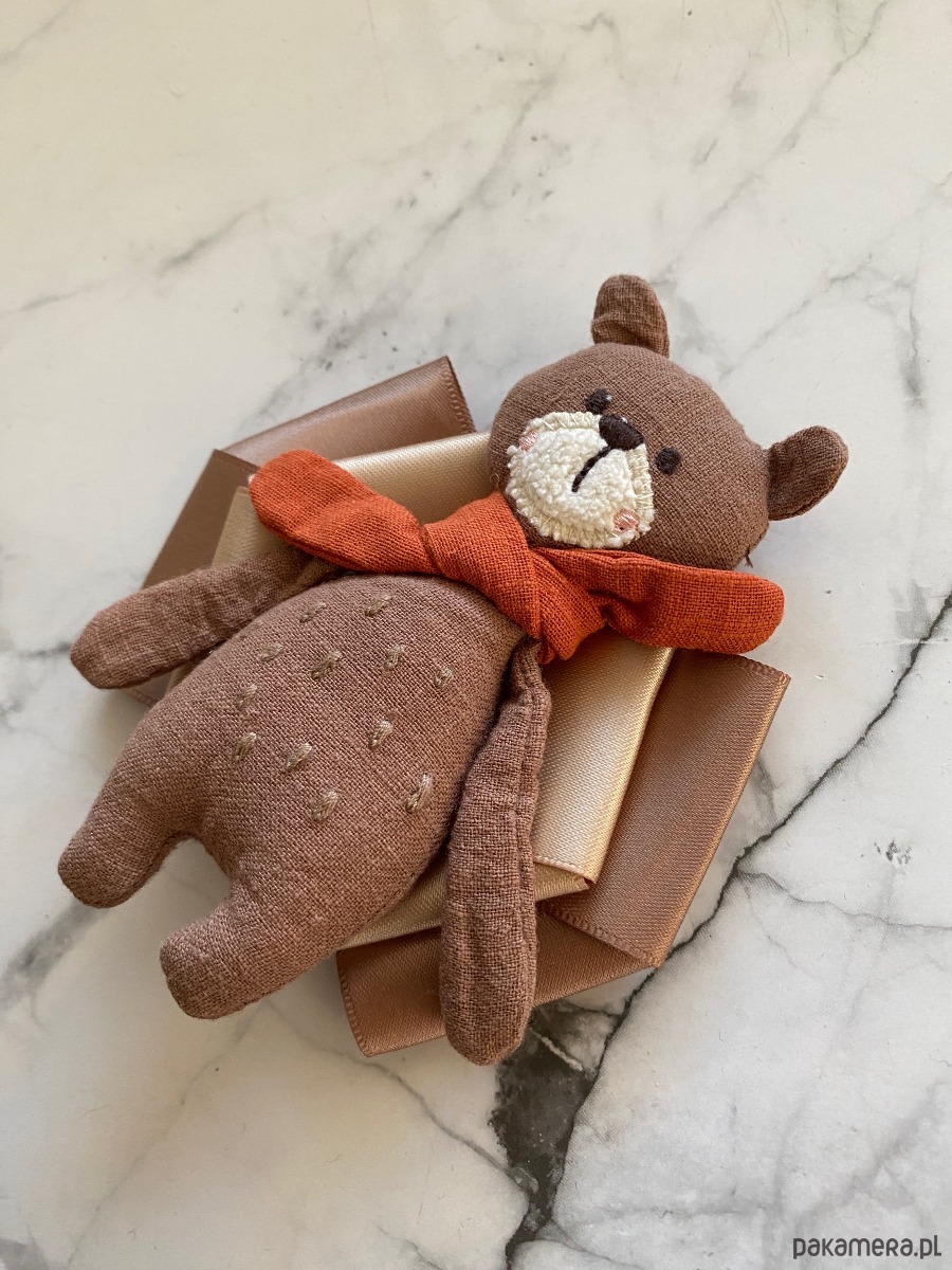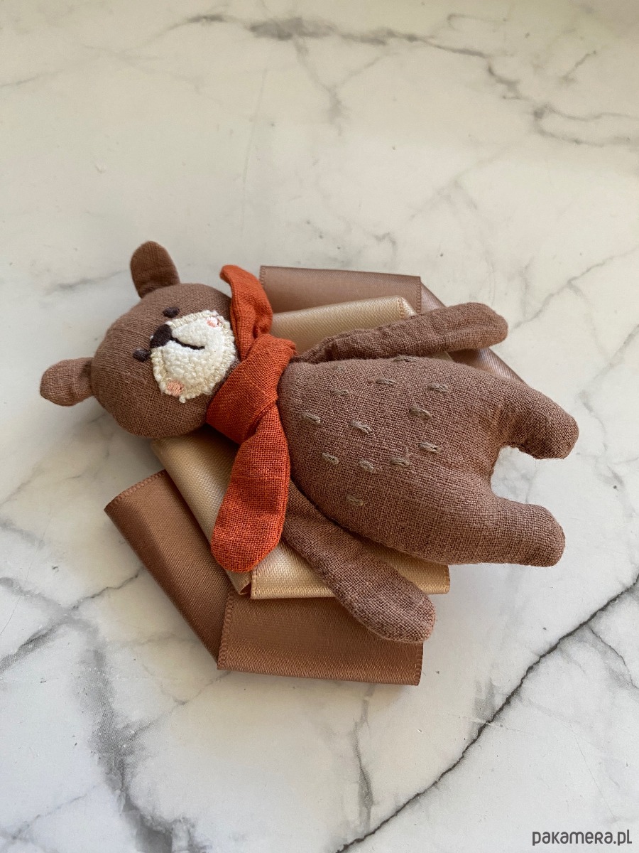 Miś 3d z czadowym szalikiem, wszystko w kolorach brązu.