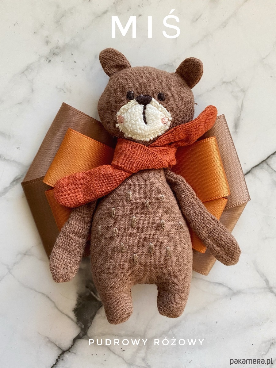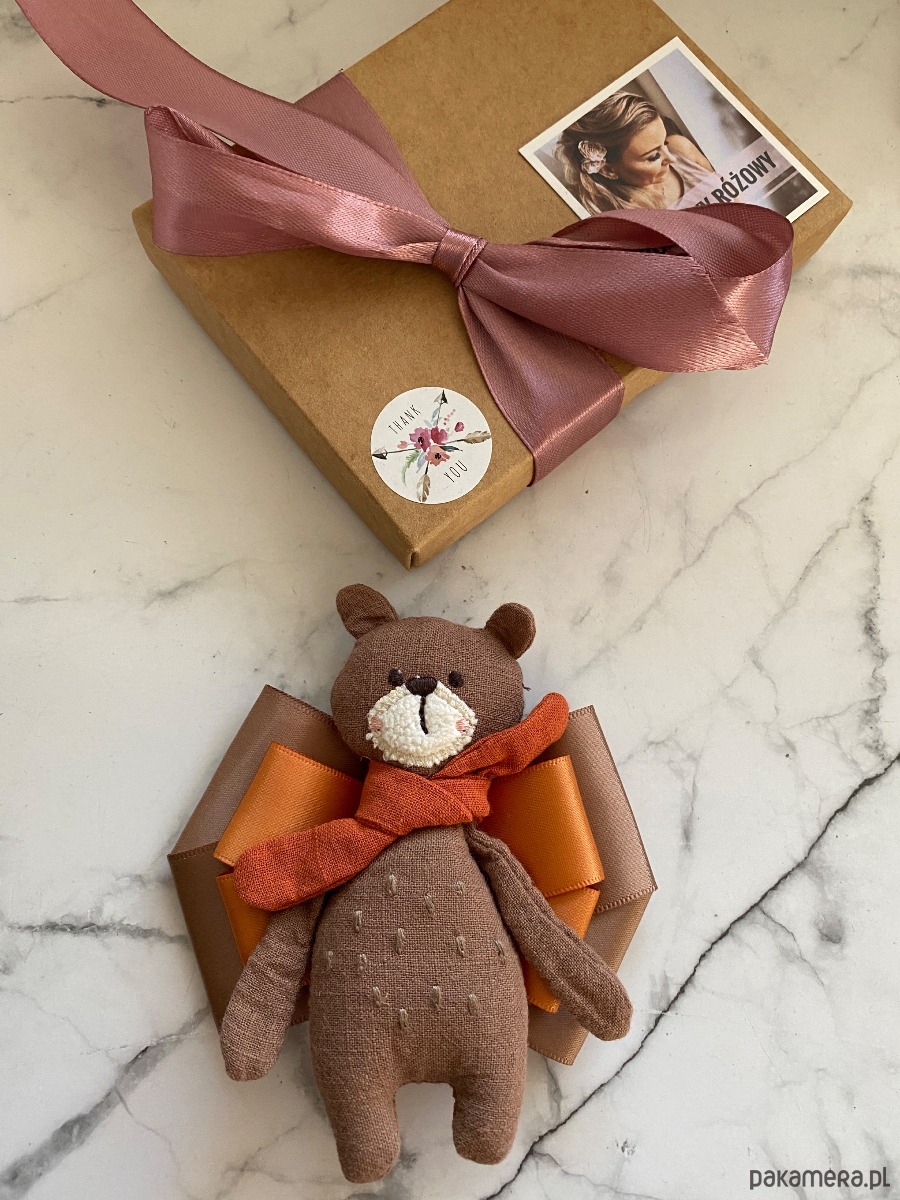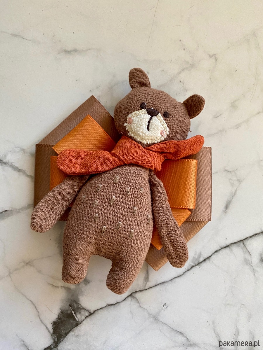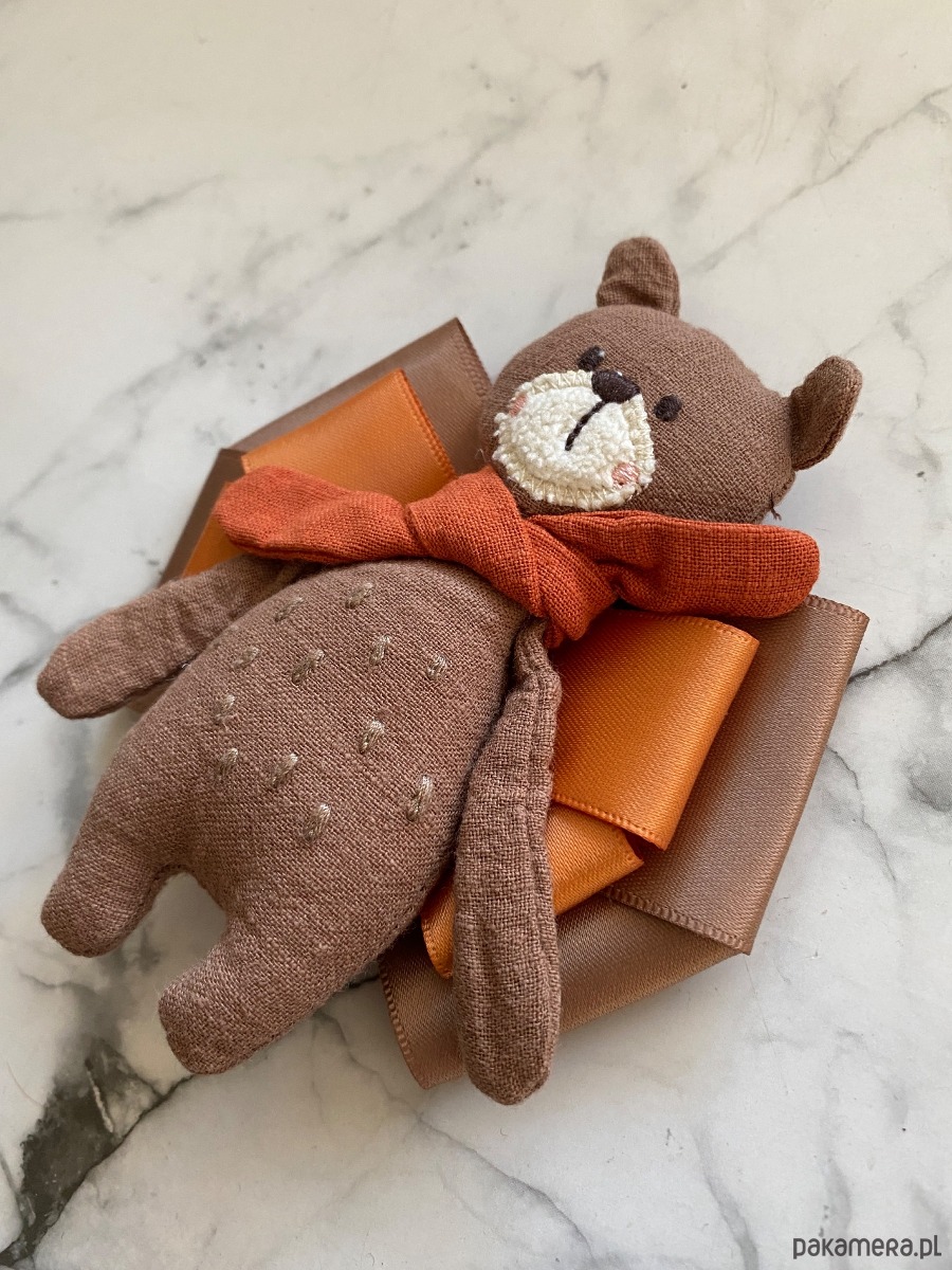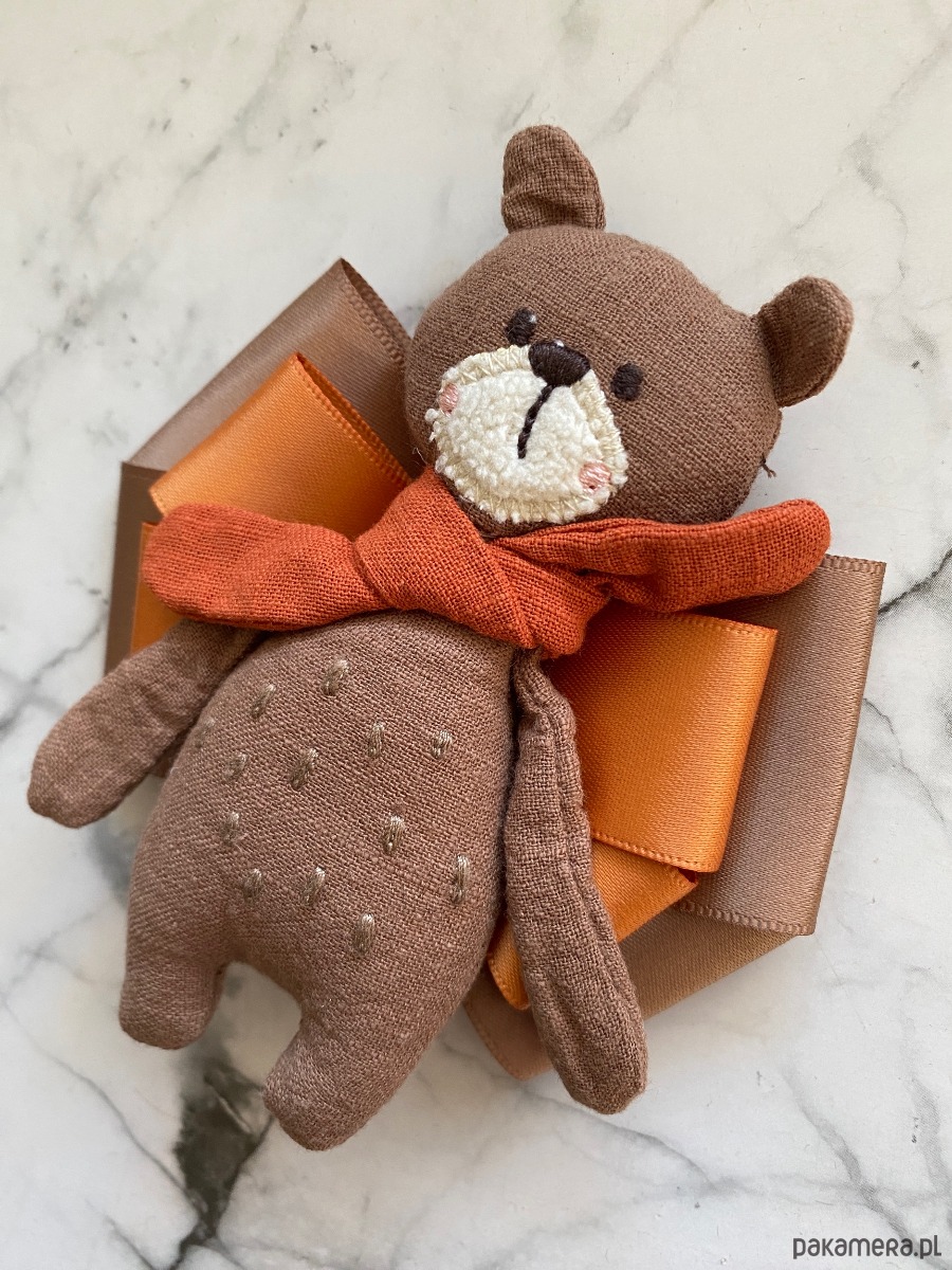 Miś 3d z czadowym szalikiem, wszystko w kolorach brązu.