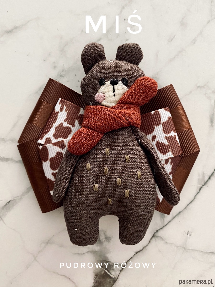 Miś 3d z czadowym szalikiem, wszystko w kolorach brązu.