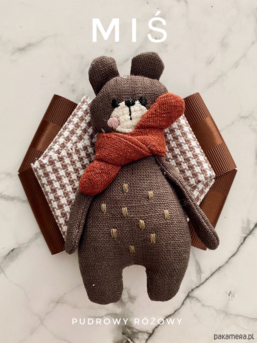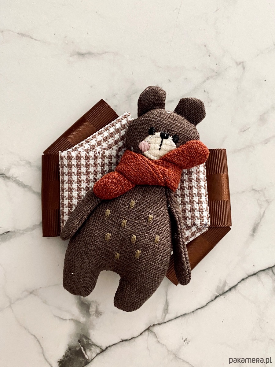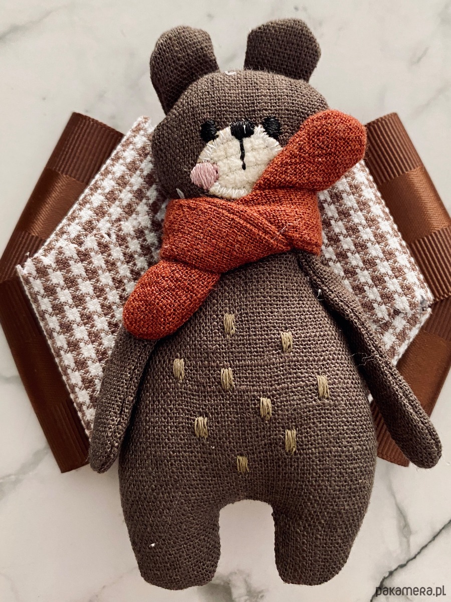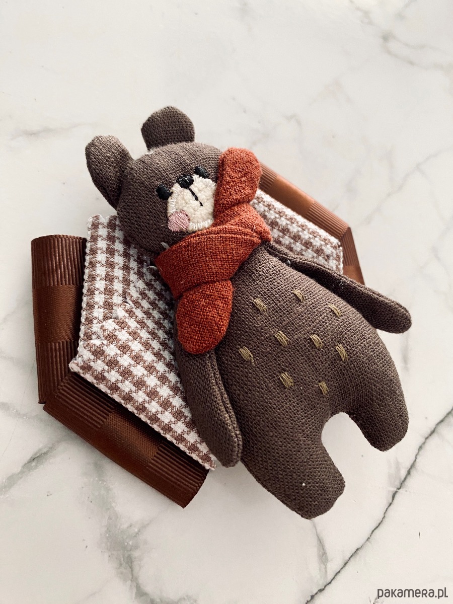 Miś 3d z czadowym szalikiem, wszystko w kolorach brązu.