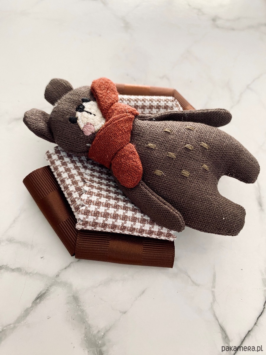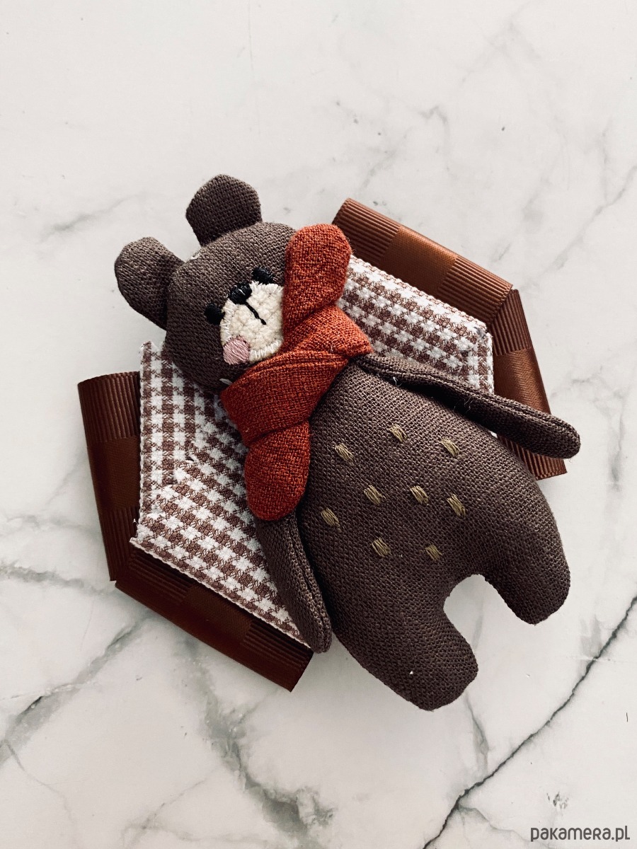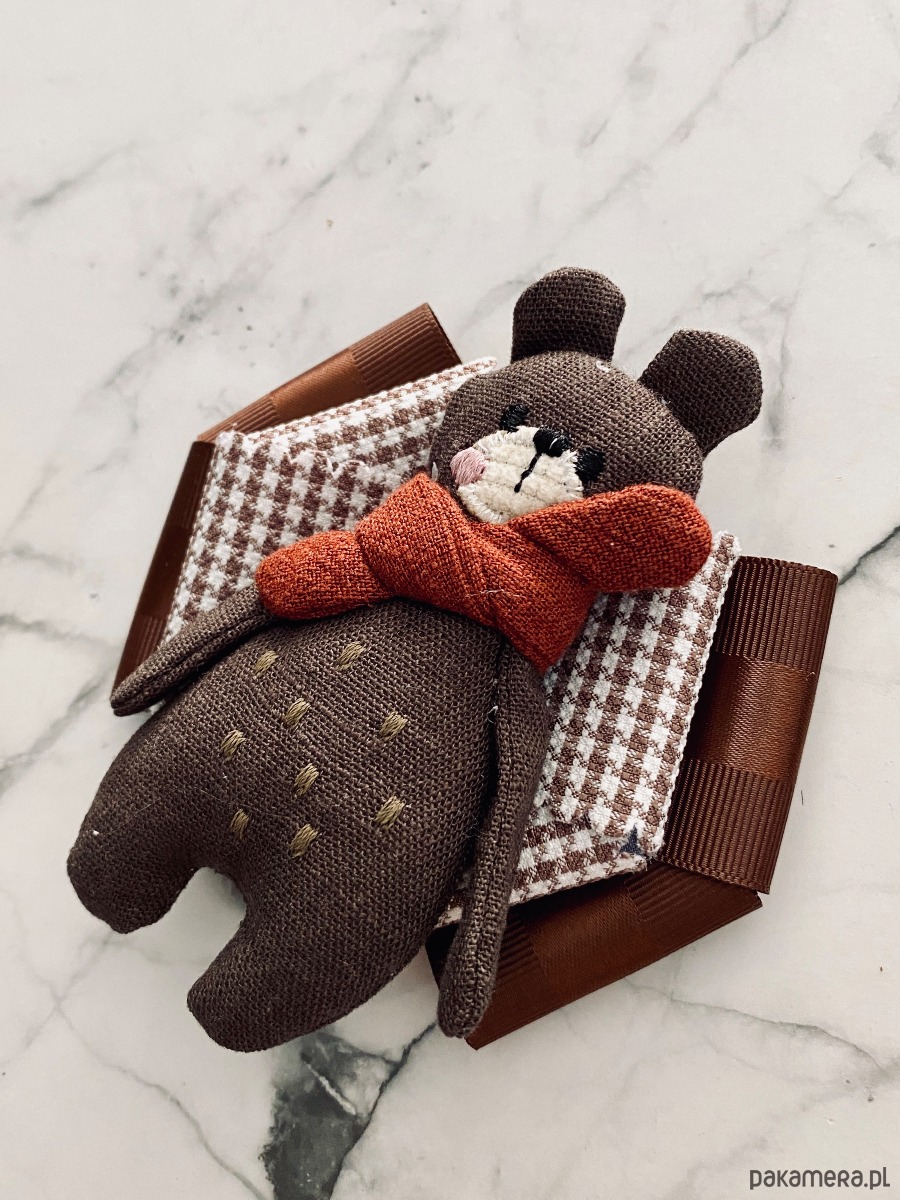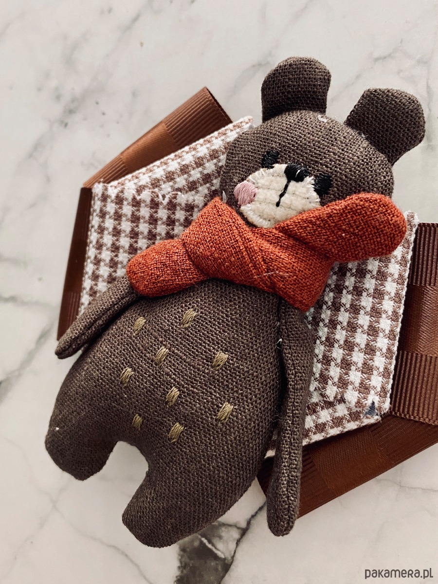 Miś 3d z czadowym szalikiem, wszystko w kolorach brązu.