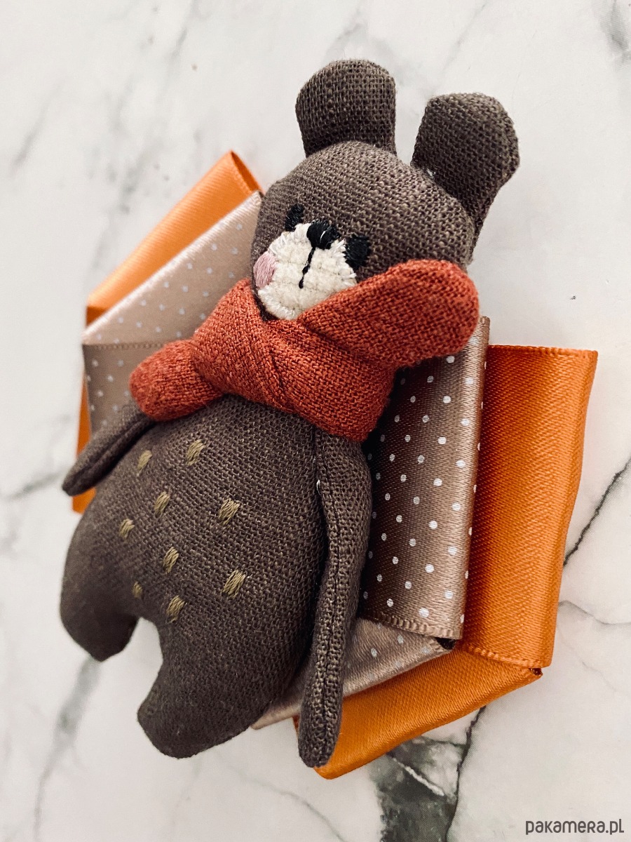 Miś 3d z czadowym szalikiem, wszystko w kolorach brązu.