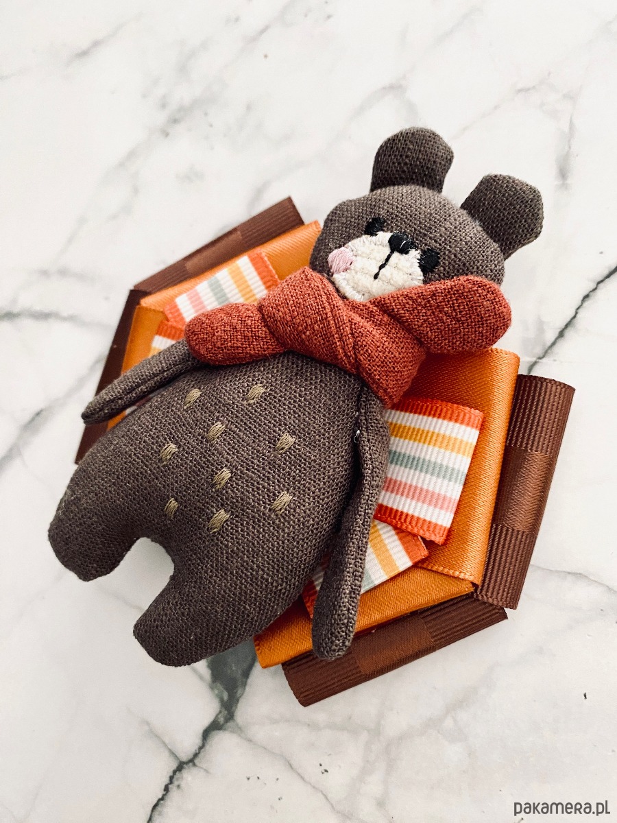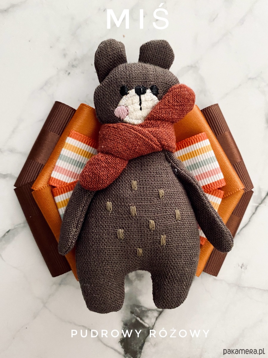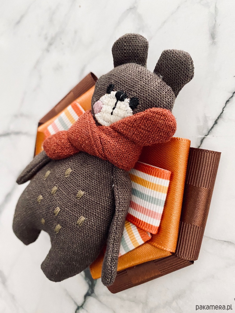 Miś 3d z czadowym szalikiem, wszystko w kolorach brązu.