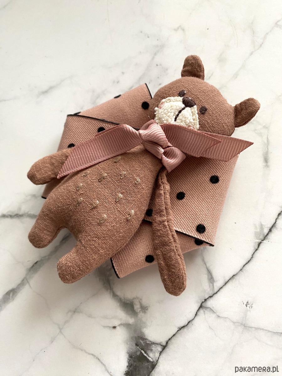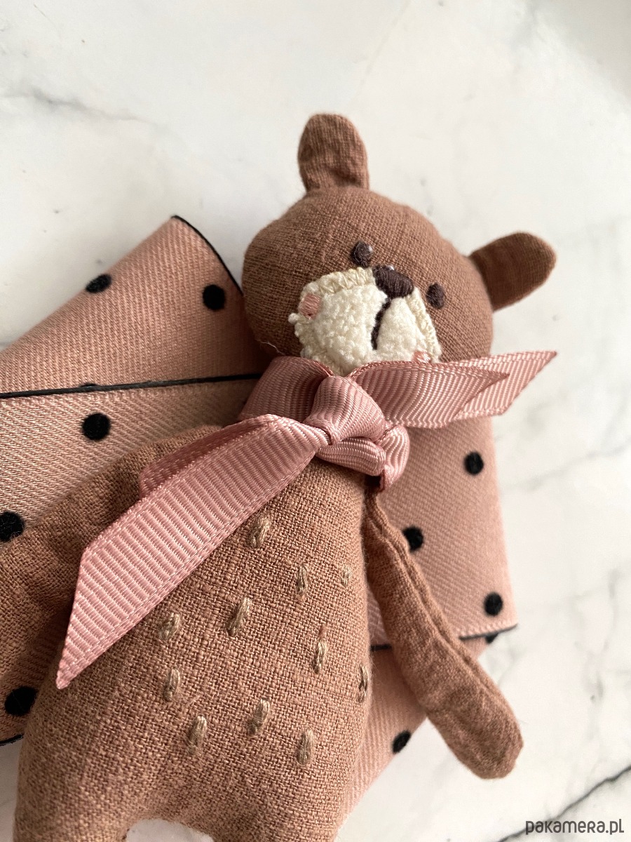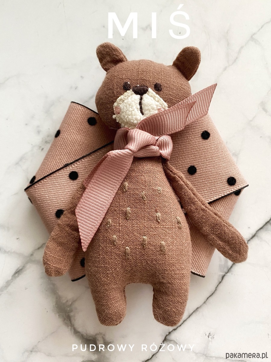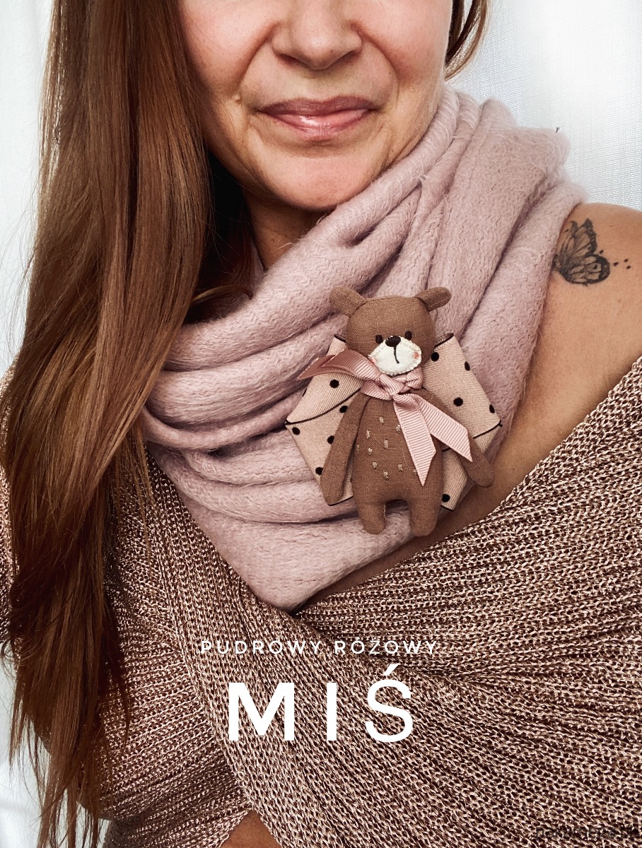 Jesienny Miś to już kultowa Brosza mojego pomysłu, tym razem Miś jest w jaśniejszym wydaniu i zamiast szalika ma podwójną różową kokardkę.