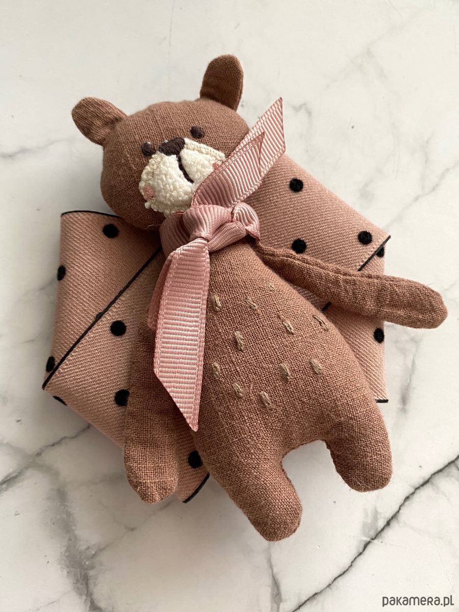 Jesienny Miś to już kultowa Brosza mojego pomysłu, tym razem Miś jest w jaśniejszym wydaniu i zamiast szalika ma podwójną różową kokardkę.