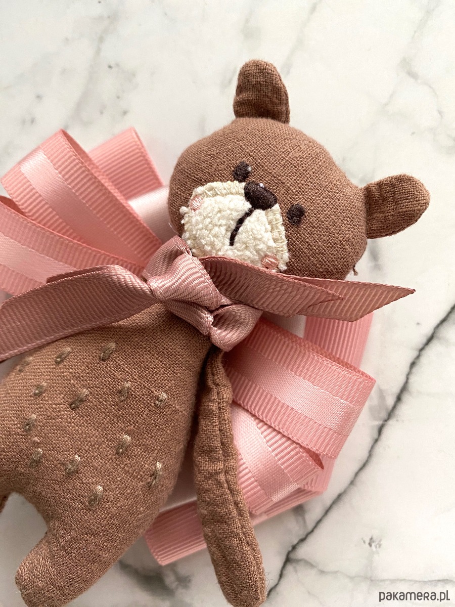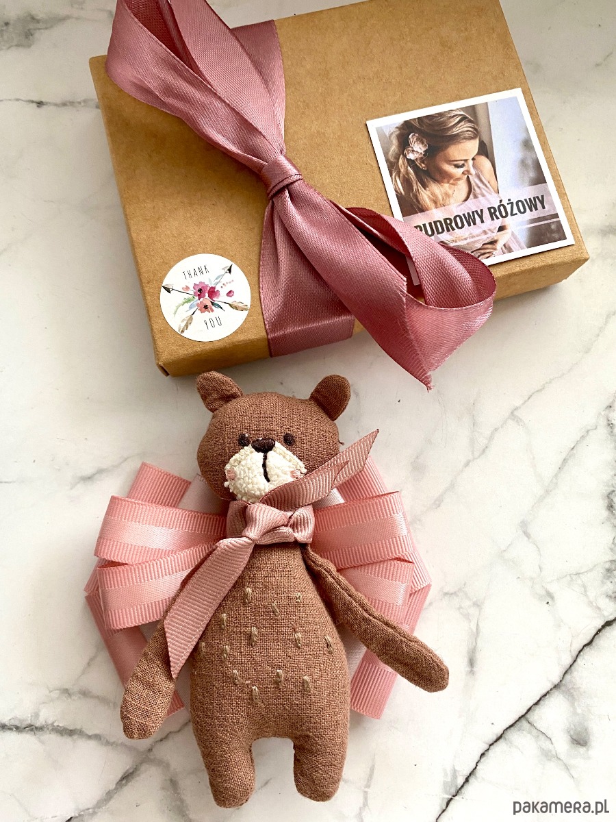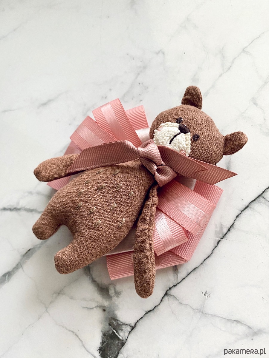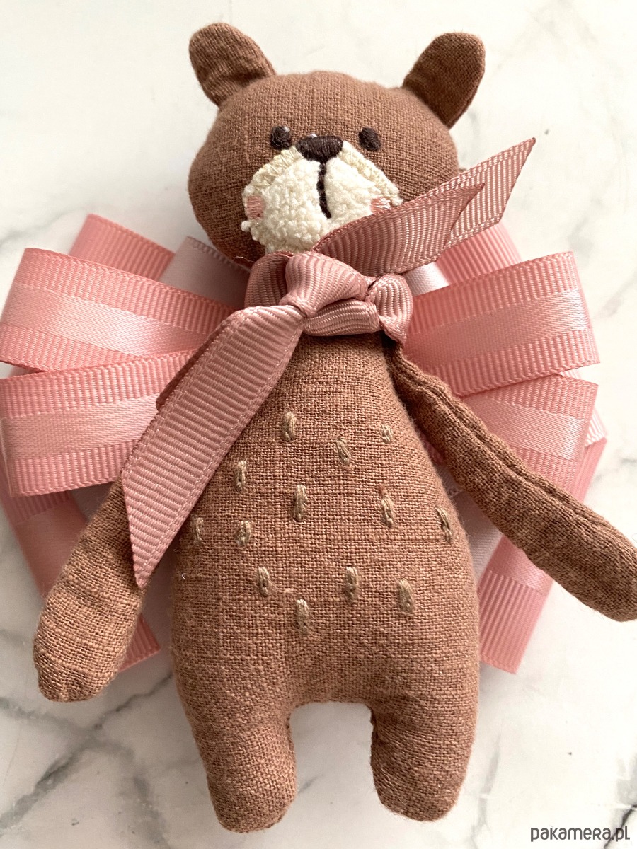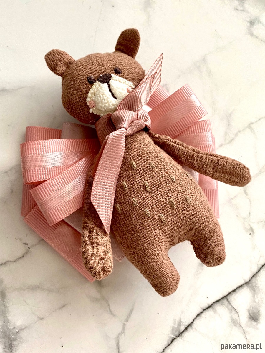 Jesienny Miś to już kultowa Brosza mojego pomysłu, tym razem Miś jest w jaśniejszym wydaniu i zamiast szalika ma podwójną różową kokardkę.