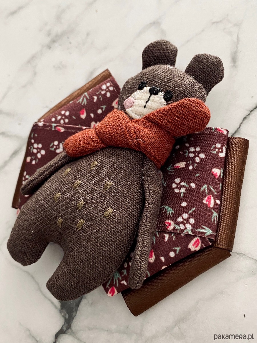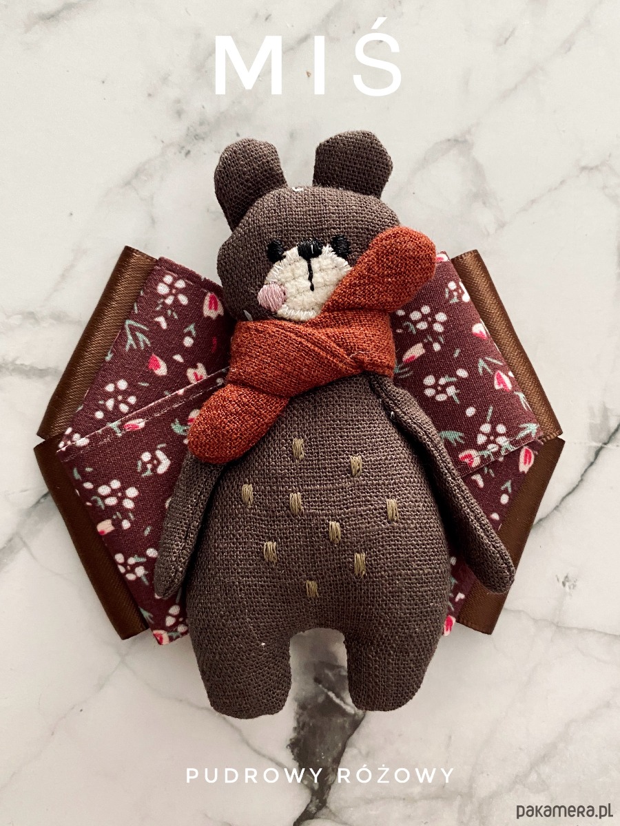 Miś 3d z czadowym szalikiem, wszystko w kolorach brązu.