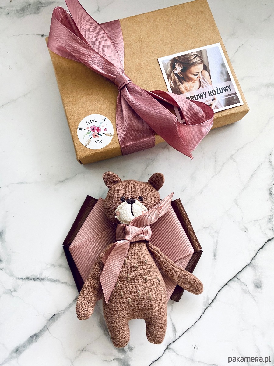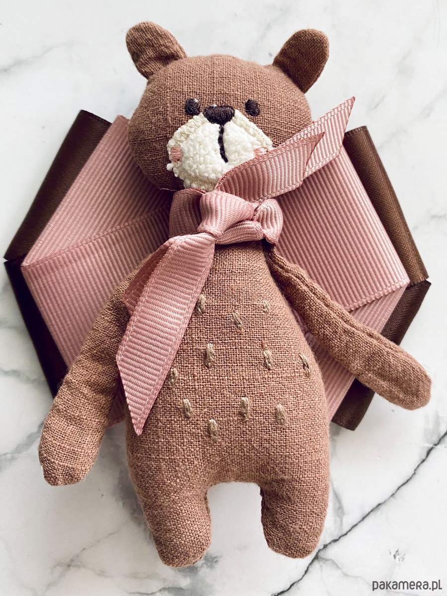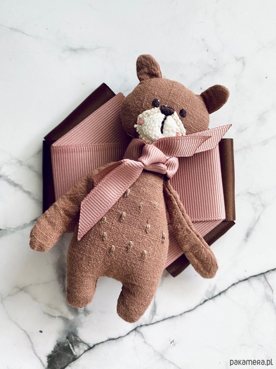 Jesienny Miś to już kultowa Brosza mojego pomysłu, tym razem Miś jest w jaśniejszym wydaniu i zamiast szalika ma podwójną różową kokardkę.