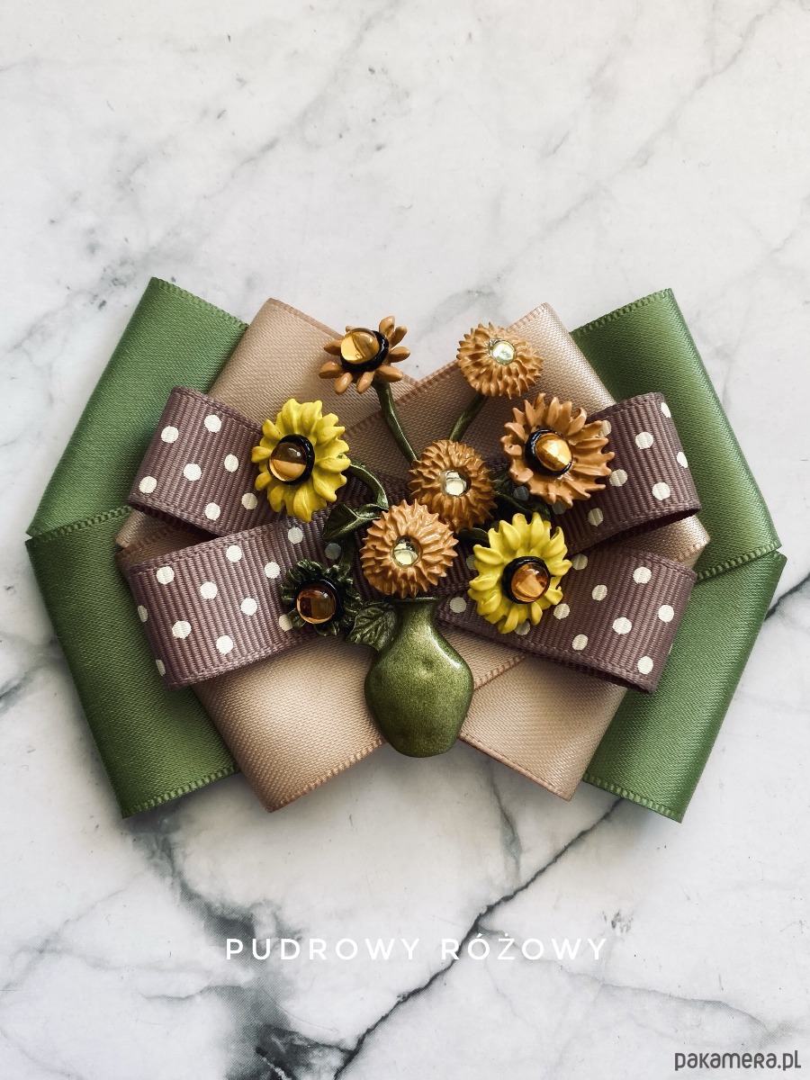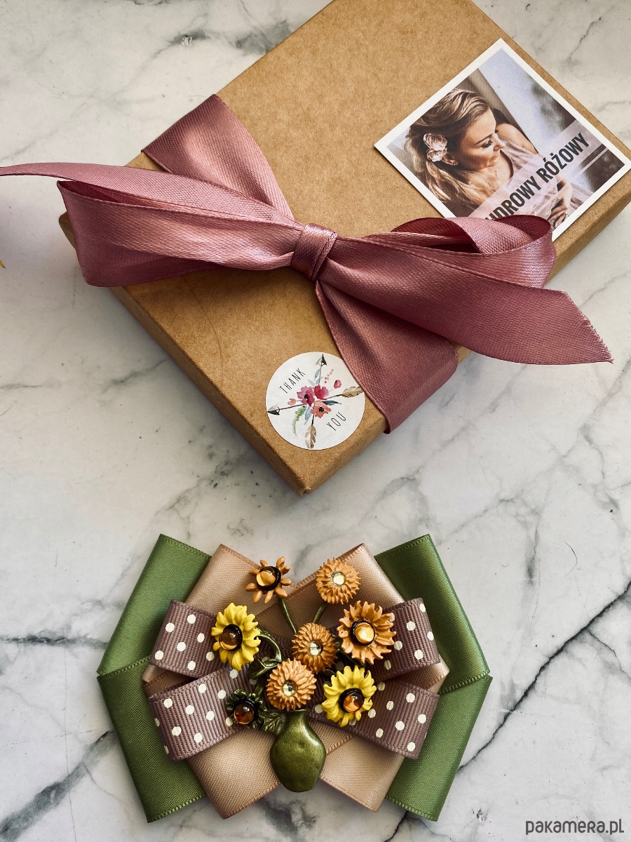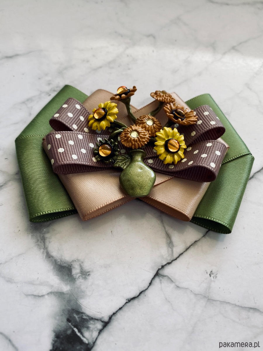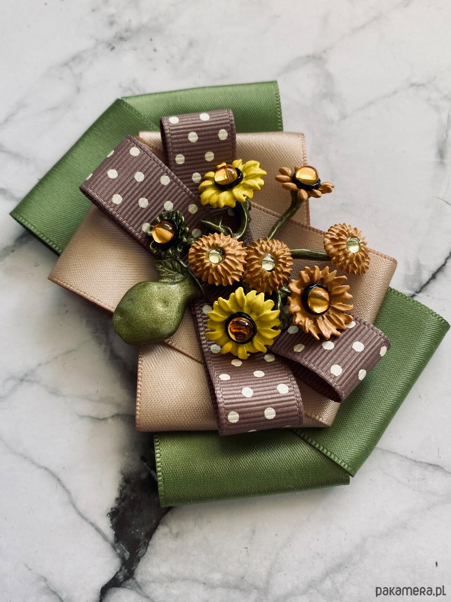 Broszka wykonana z wysokiej jakości taśm i dodatków.