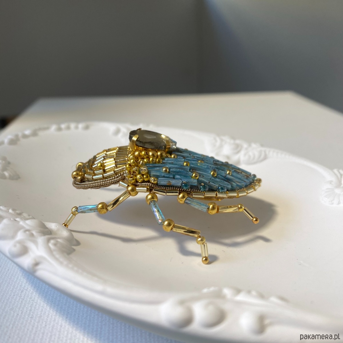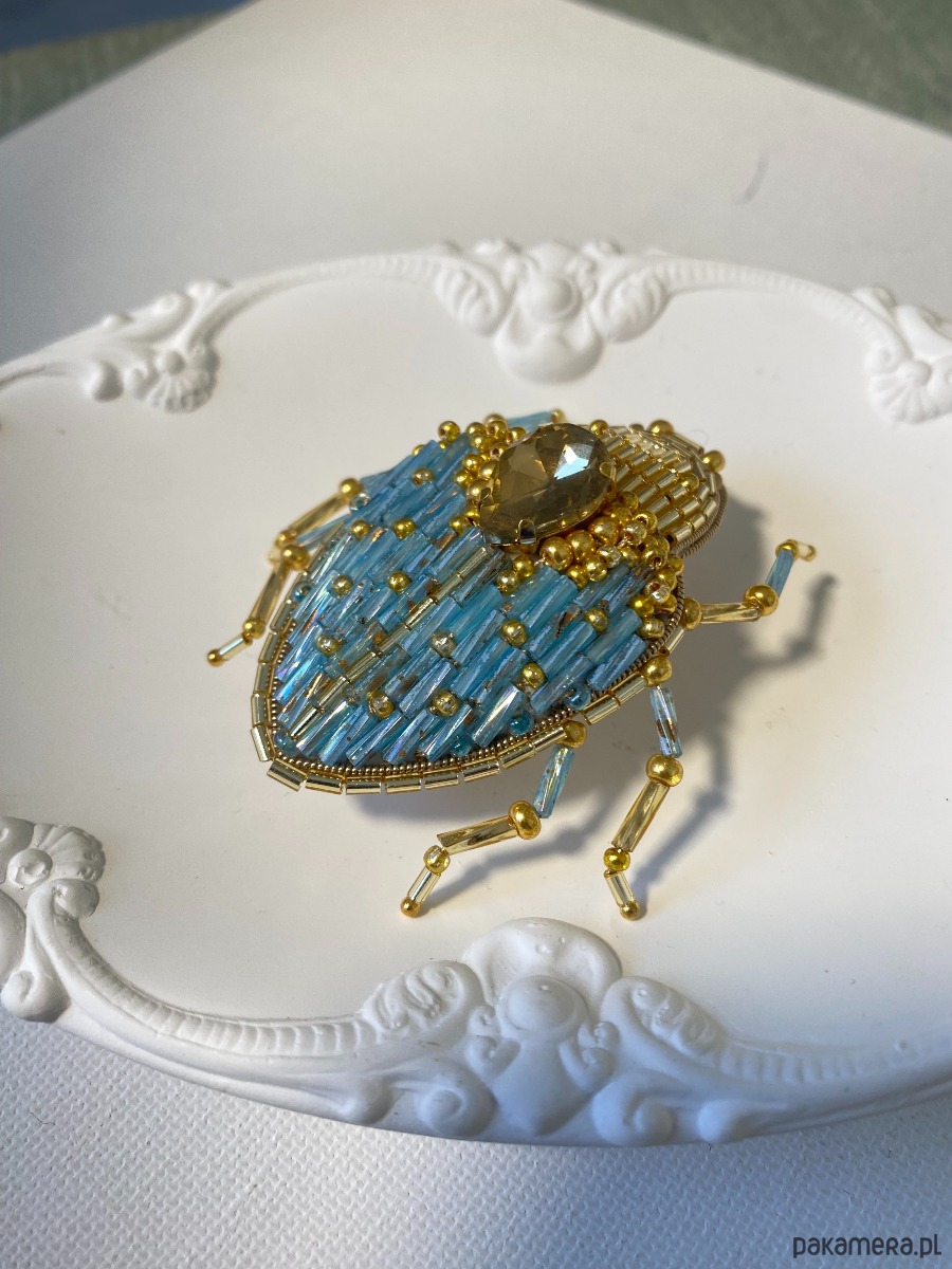 Artystyczna Broszka Żuk, Haftowana koralikami