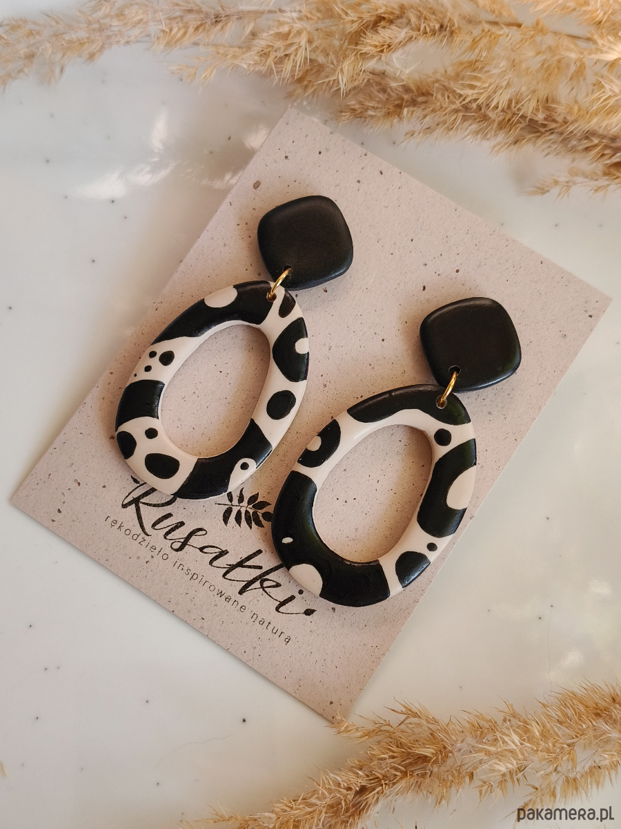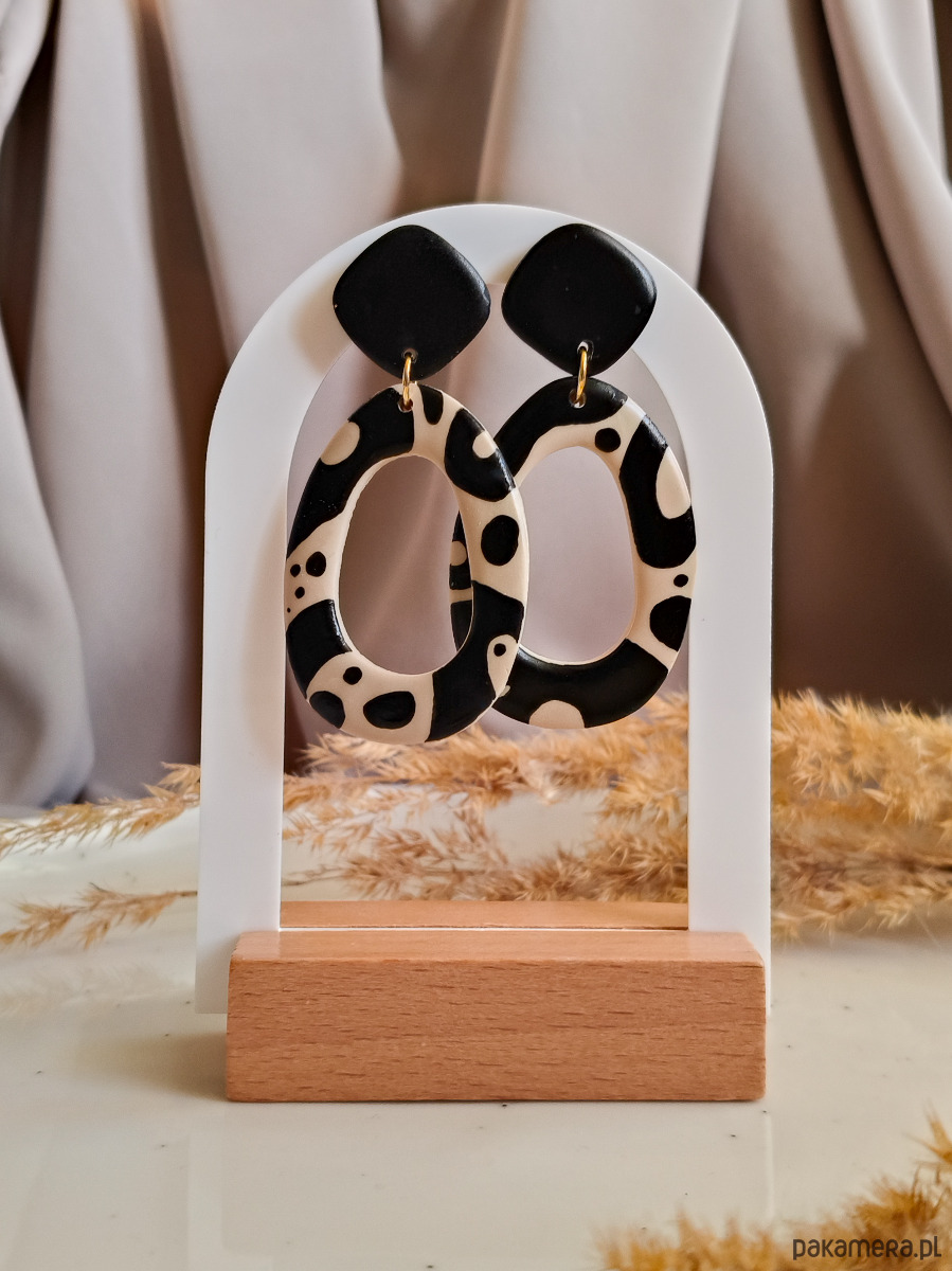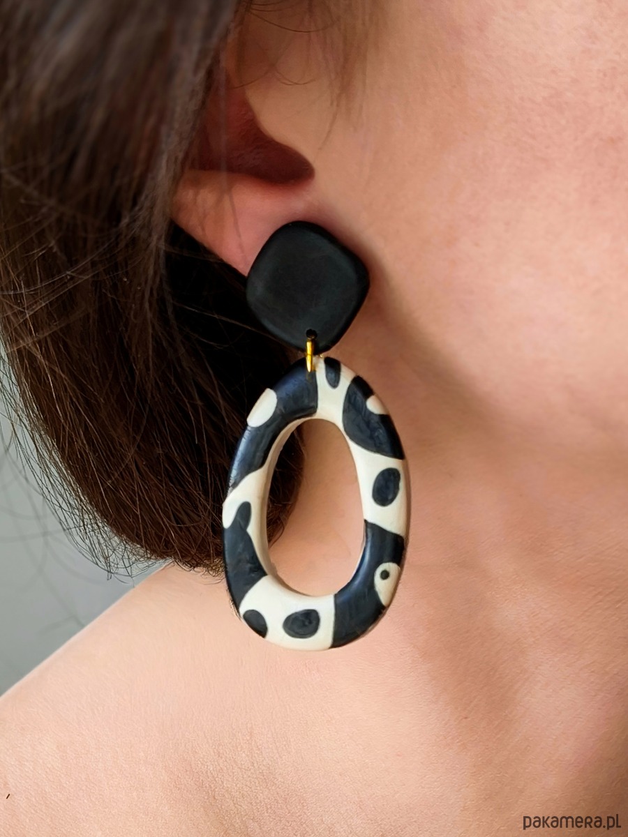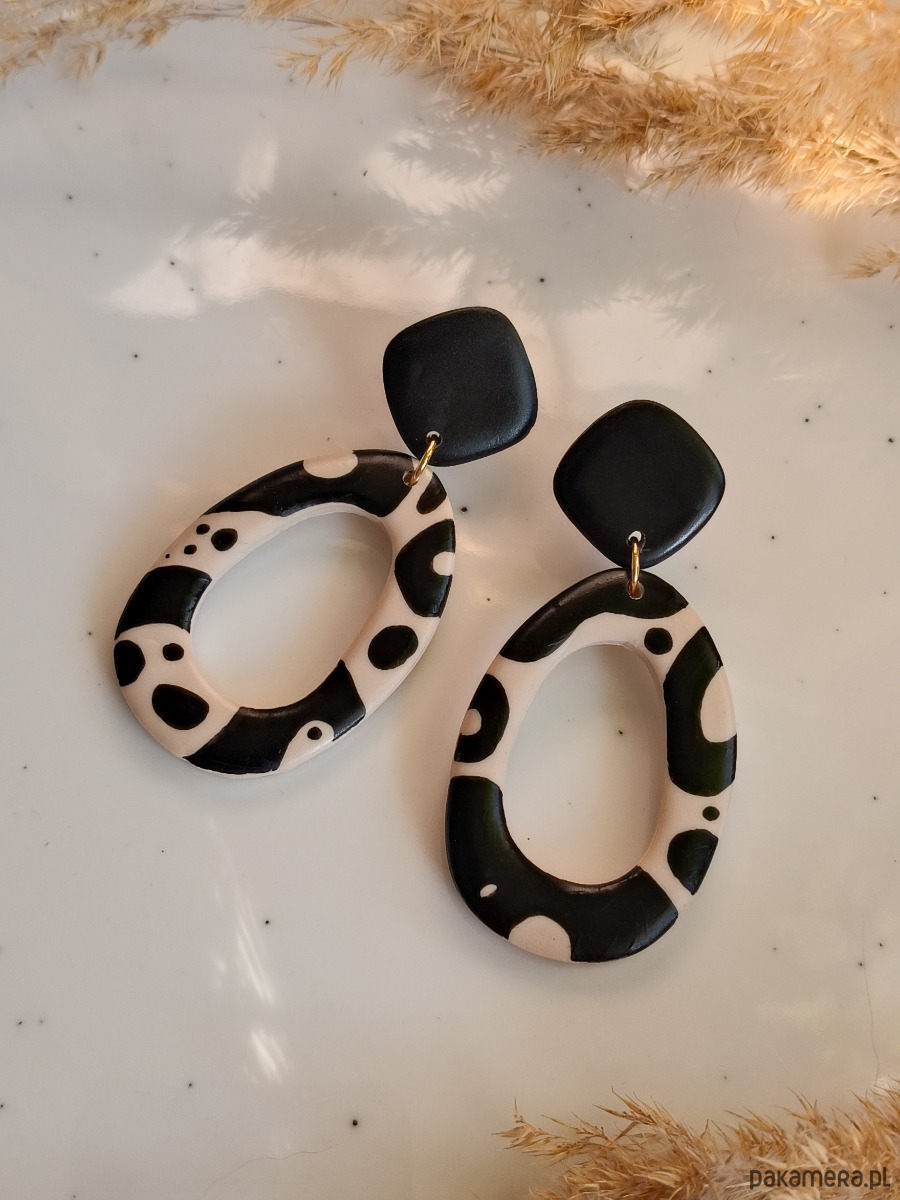 Artystyczne kolczyki abstrakcyjne w beżowo czarnej kolorystyce