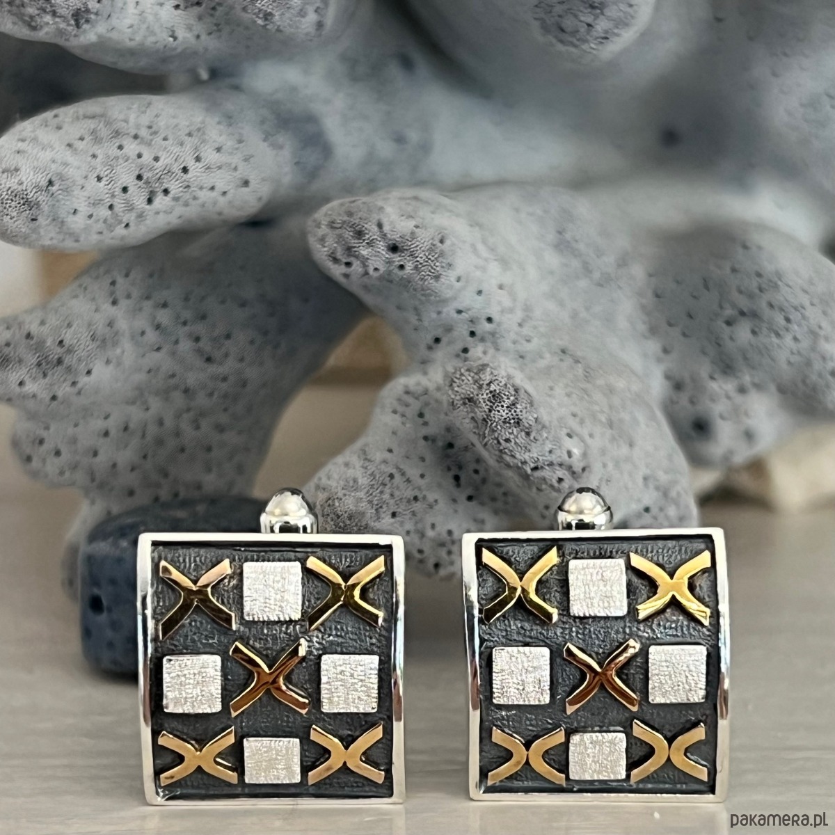 Artystyczne spinki do koszuli , spinki do mankietów, srebro i złoto