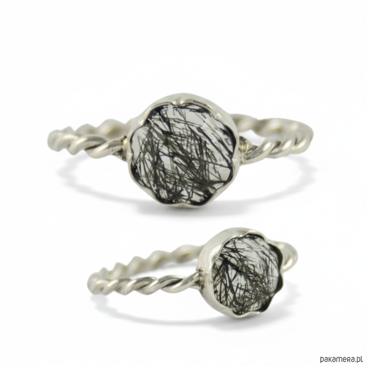 Odkryj piękno ukryte w graficznych liniach natury. Ten ręcznie wykonany pierścionek to połączenie surowej siły minerałów i precyzyjnego rzemiosła. Sercem projektu jest kwarc turmalinowy, w którego wnętrzu natura uwięziła czarne „igiełki” turmalinu. Dlatego każdy kamień tworzy niepowtarzalny wzór, którego nie da się skopiować. Kupując ten model, zyskujesz pewność, że posiadasz jedyny taki egzemplarz na świecie.