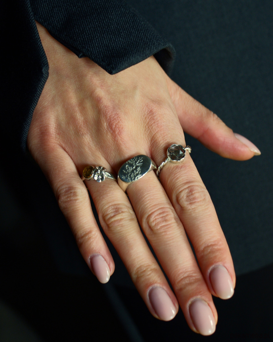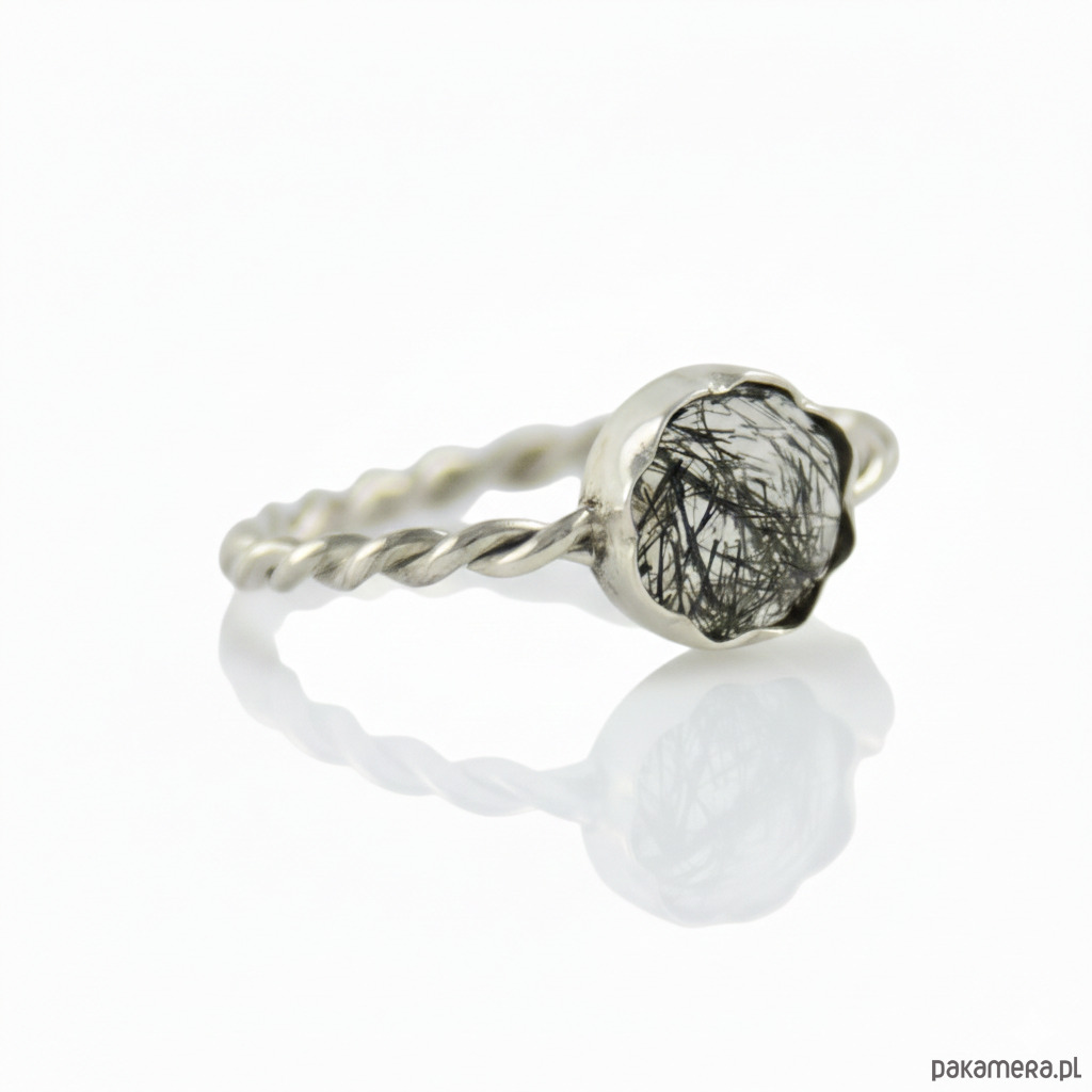 Artystyczne rzemiosło i detale Szczególną uwagę przyciąga ozdobna, ręcznie skręcana obrączka. Nadaje ona biżuterii unikalnego, nieco surowego charakteru, który idealnie współgra z nowoczesnym stylem życia. Ponadto oprawę kamienia wykończyłam subtelnym wzorem przypominającym kwiat. Ten delikatny detal pięknie kontrastuje z minimalistyczną kolorystyką srebra i głębokiej czerni turmalinu. Dzięki temu pierścionek staje się biżuterią z duszą, która przyciąga spojrzenia.