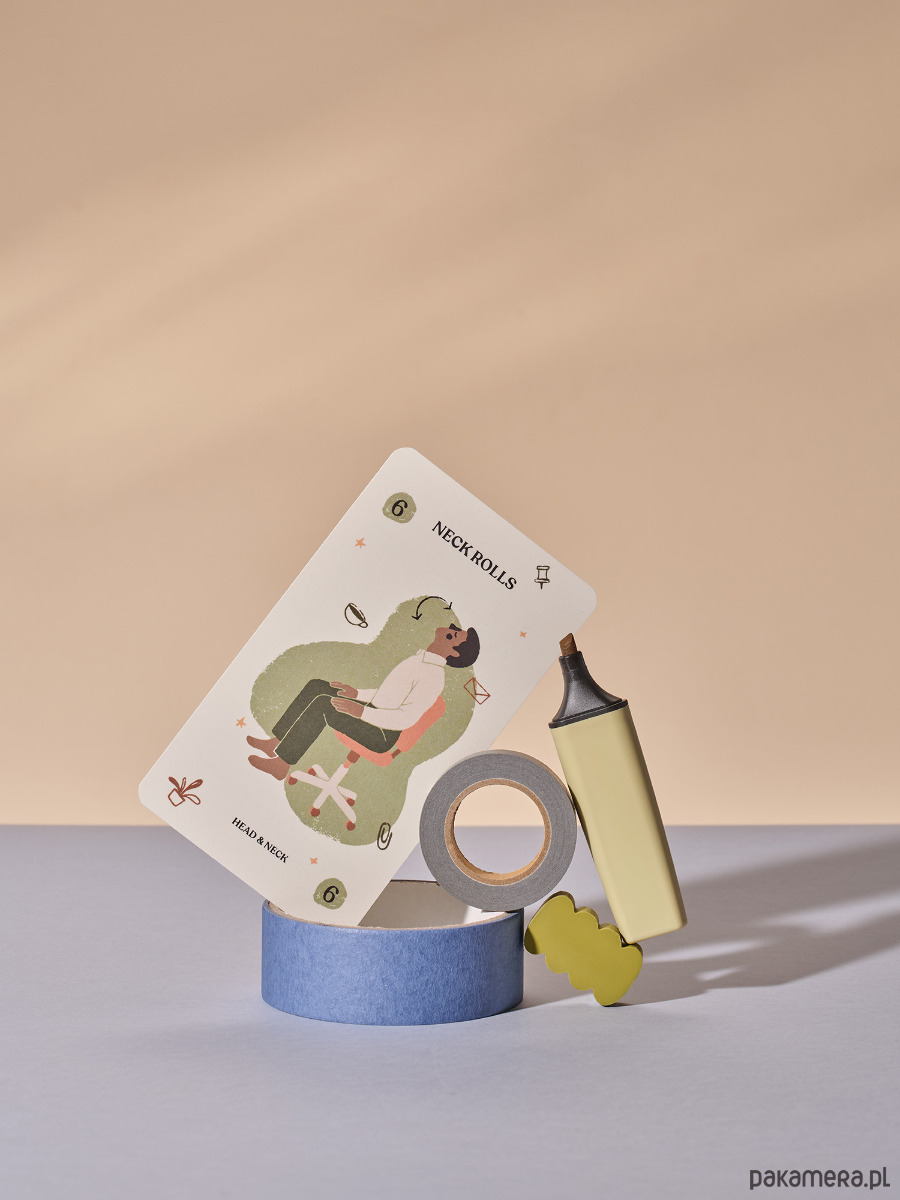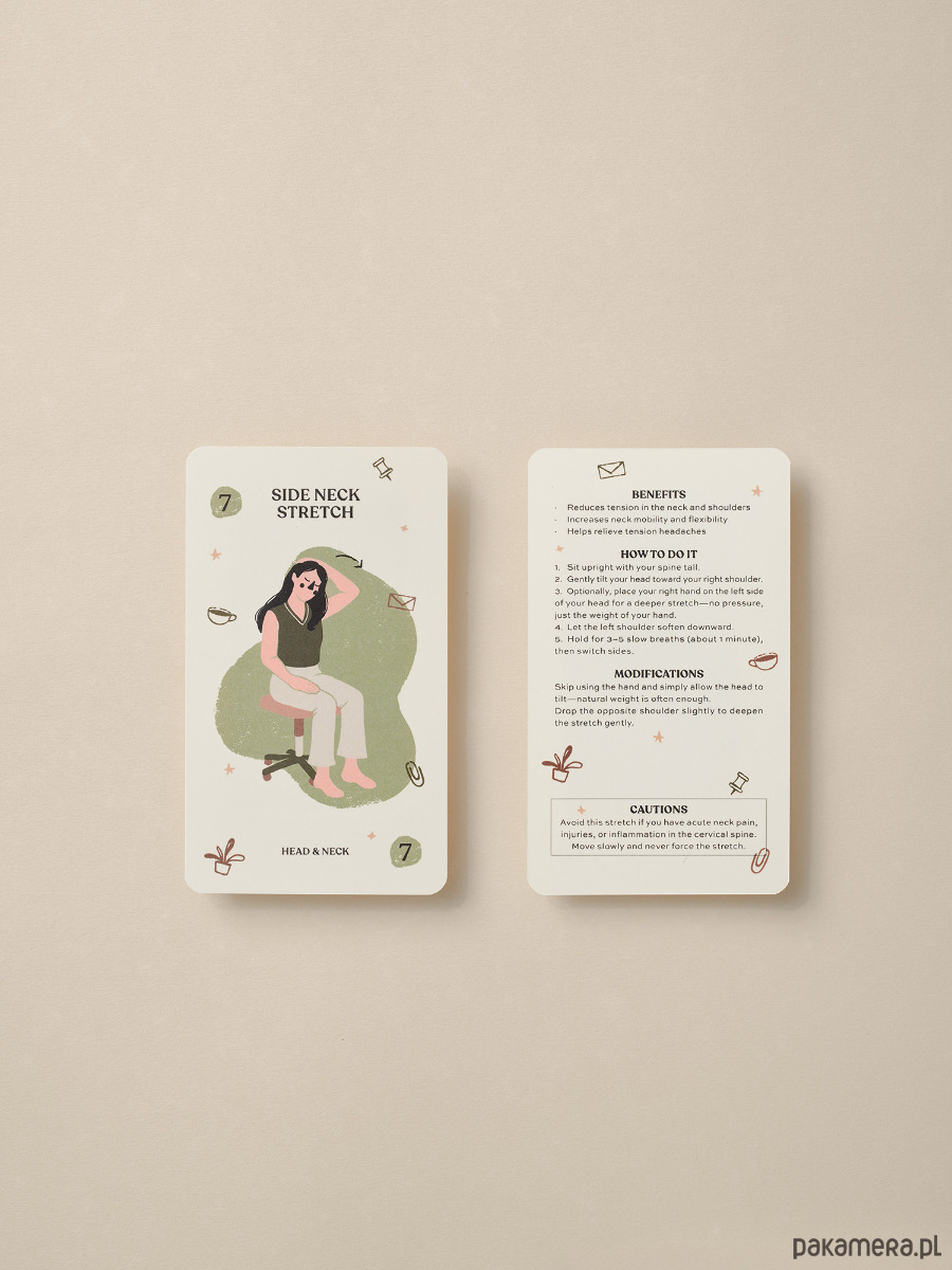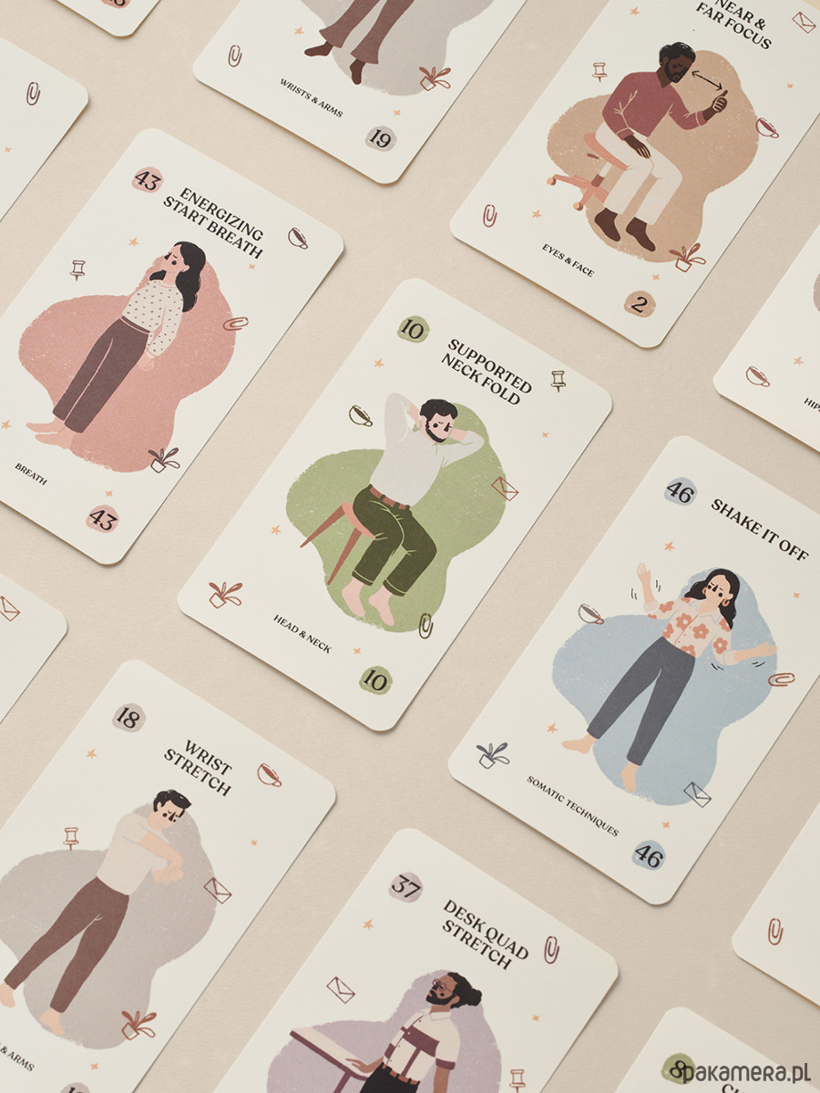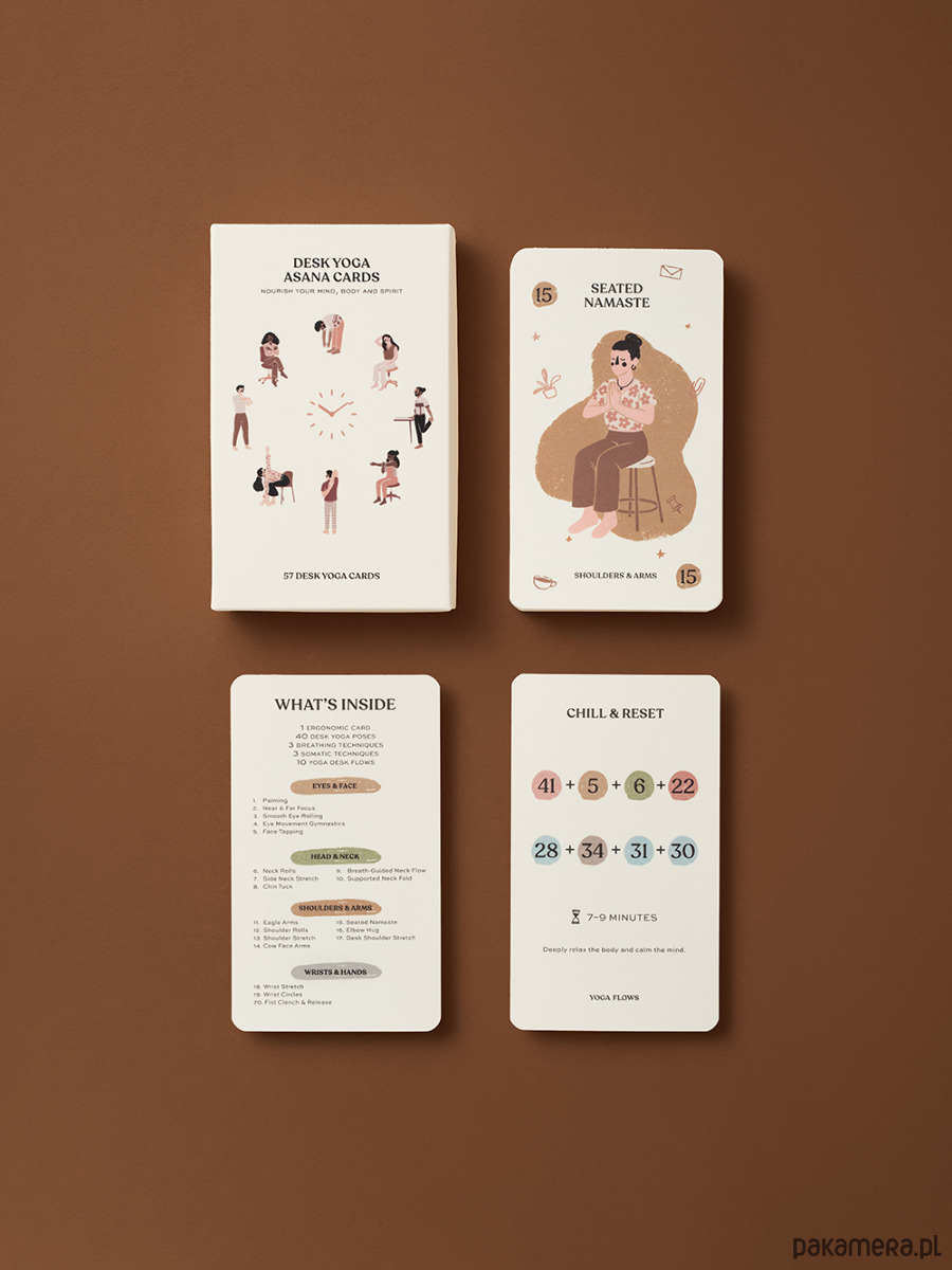 Desk Yoga Asana Cards is a set of cards with easy-to-perform yoga poses, breathing techniques, and somatic exercises.