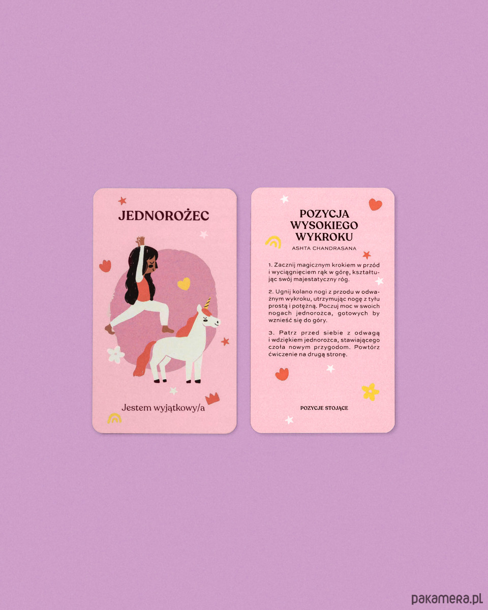 Na każdej karcie znajduje się urocza ilustracja zwierzątka lub przedmiotu wraz z pozytywnym przesłaniem, które zachęci młode umysły do odkrywania i nauki. Proste instrukcje umieszczone na odwrocie każdej karty umożliwią rodzicom do prostego wprowadzenia małych joginów w świat jogi. Poprzez angażujące aktywności, które wzmacniają więzi i przynoszą radość, możesz pomóc swojemu dziecku zwiększyć elastyczność, koncentrację oraz poczucie szczęścia.