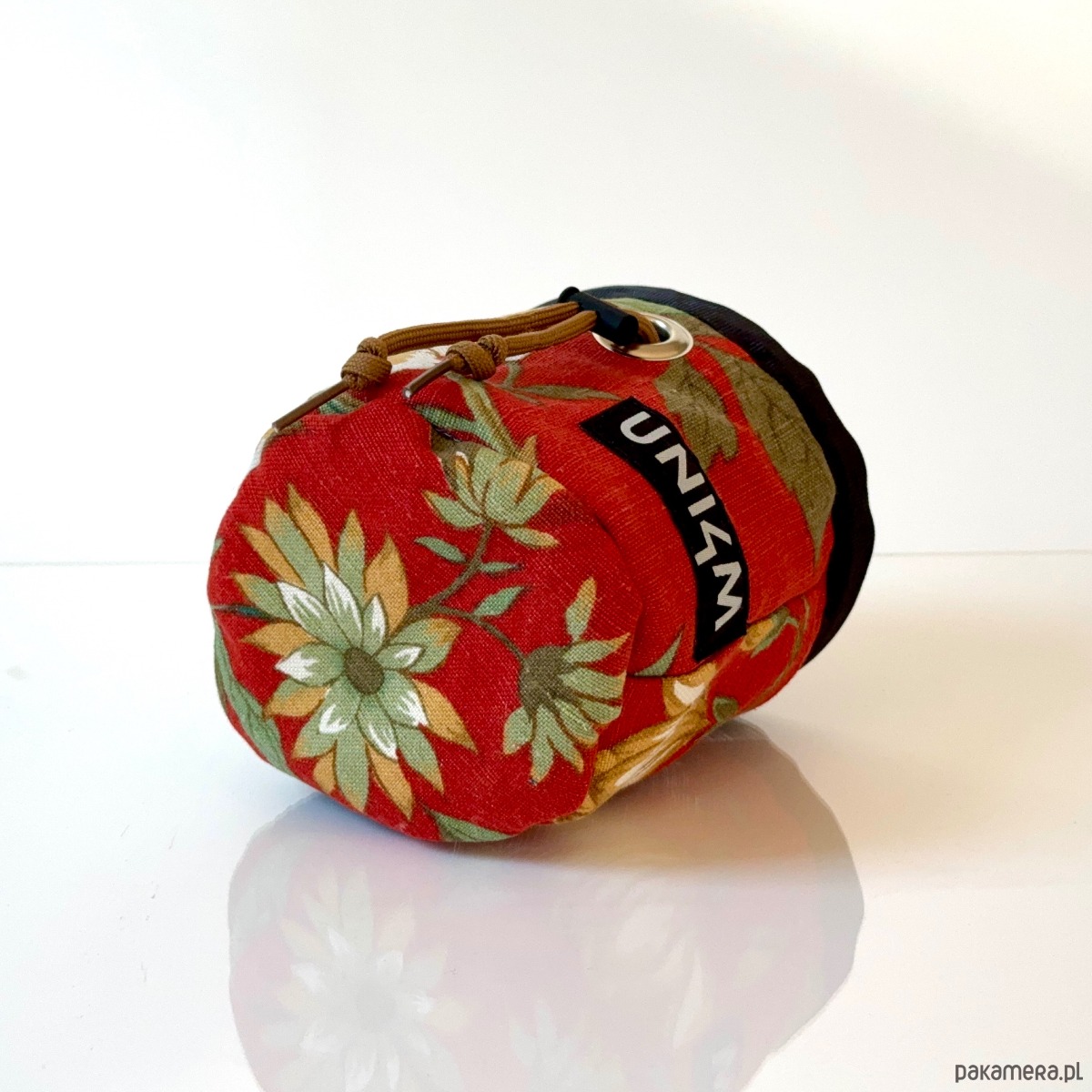 Każdy egzemplarz jest unikatowy, nie ma dwóch identycznych. Worki posiadają kieszonkę. Zamykane są na sznurek regulowany stoperem. Mocowanie jest dostosowane do montażu do nerki lub na osobnym, dołączonym do każdego woreczka regulowanym pasku.
